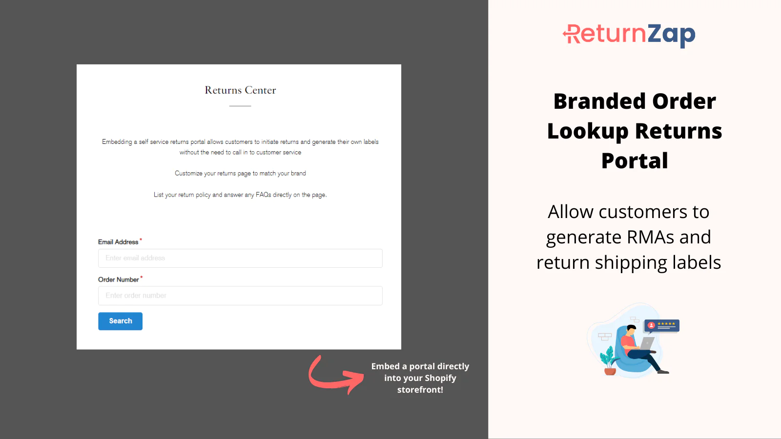 Self-Service Returns Portal : Embed a returns portal on your shop and allow customers to initiate returns without contacting support.