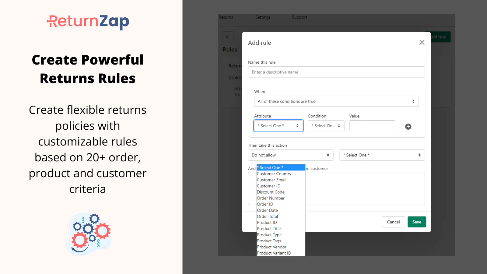 Route returns to different warehouses or prevent returns for certain conditions with powerful rules