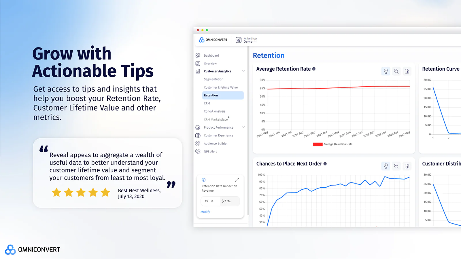Use data analysis to identify customers at the risk of churning, then trigger email flows to improve retention rate.