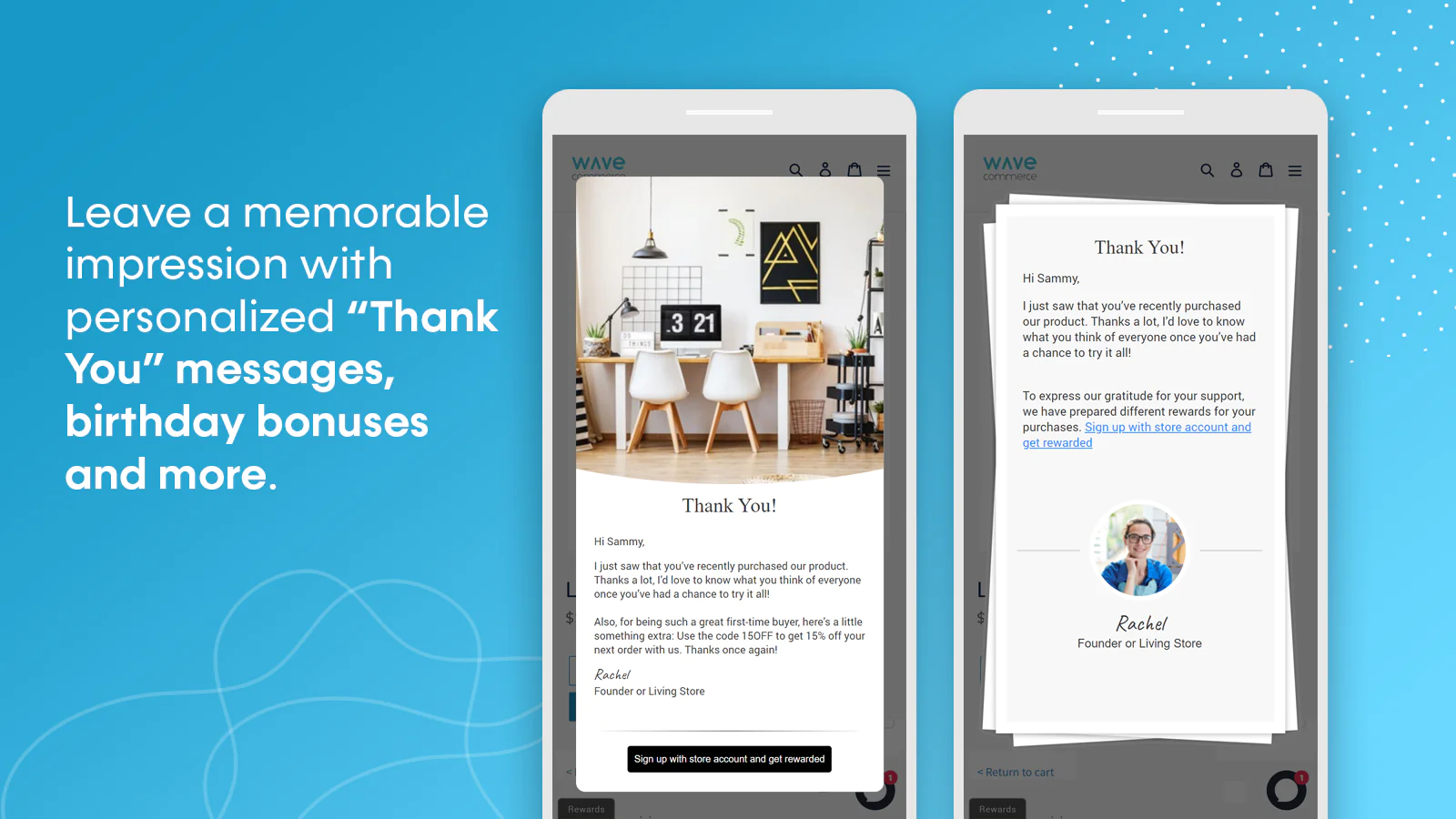 Delightful Personalizations : Engage and delight customers with personalized features such as “Welcome” and “Birthday” bonuses and “Thank You” messages.