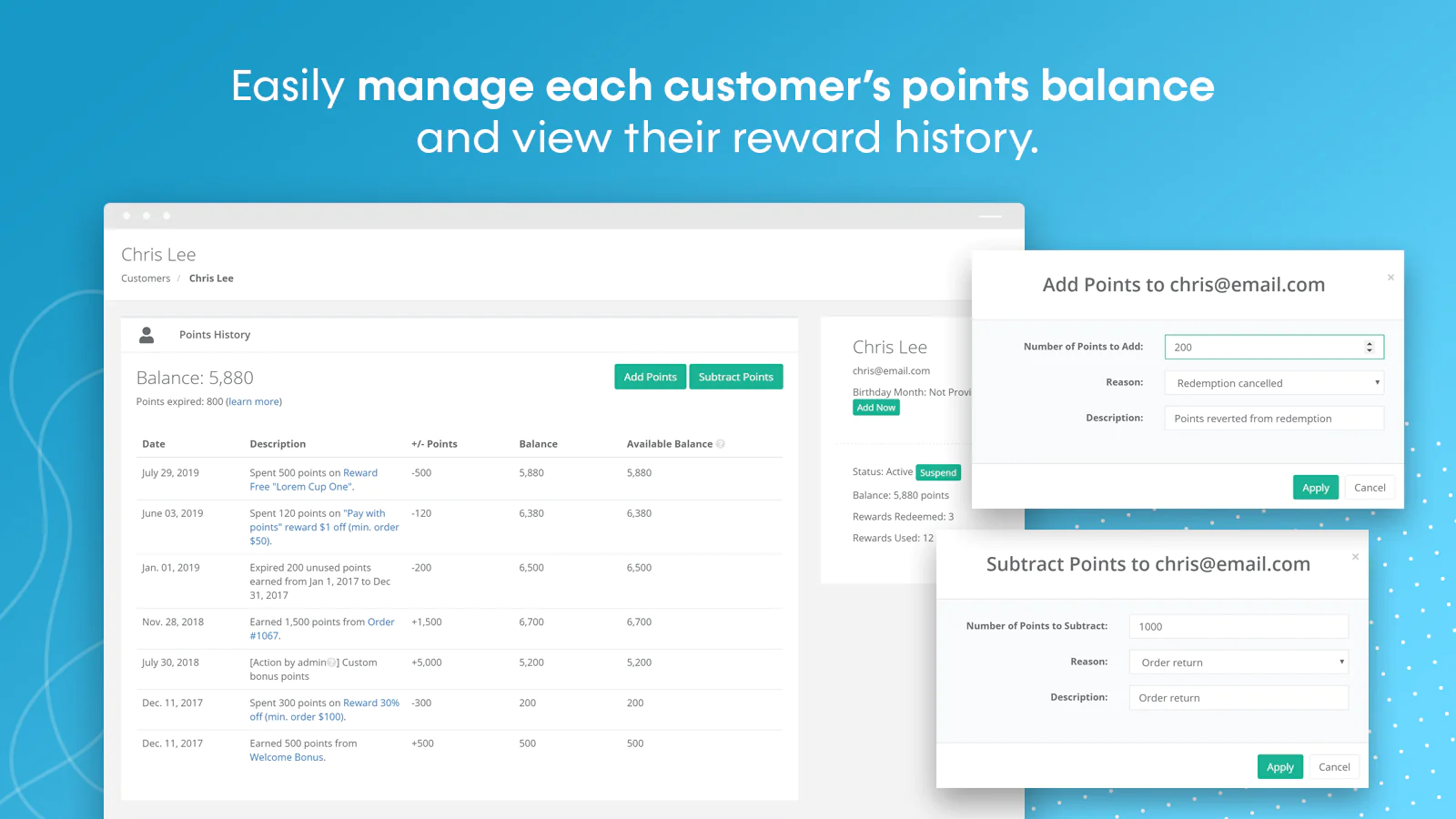 5) Learn More About Your Customers — Check customer purchasing and point redemption history and export the data to gain insights on shopping behaviour to plan future campaigns.