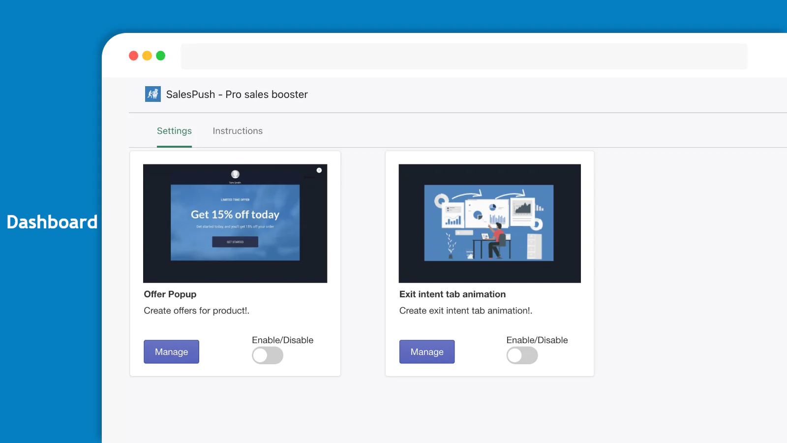 SalesPush offer high conversion techniques/tools like special offer popup, animated exit intent like feature to improve conversion rate of store.