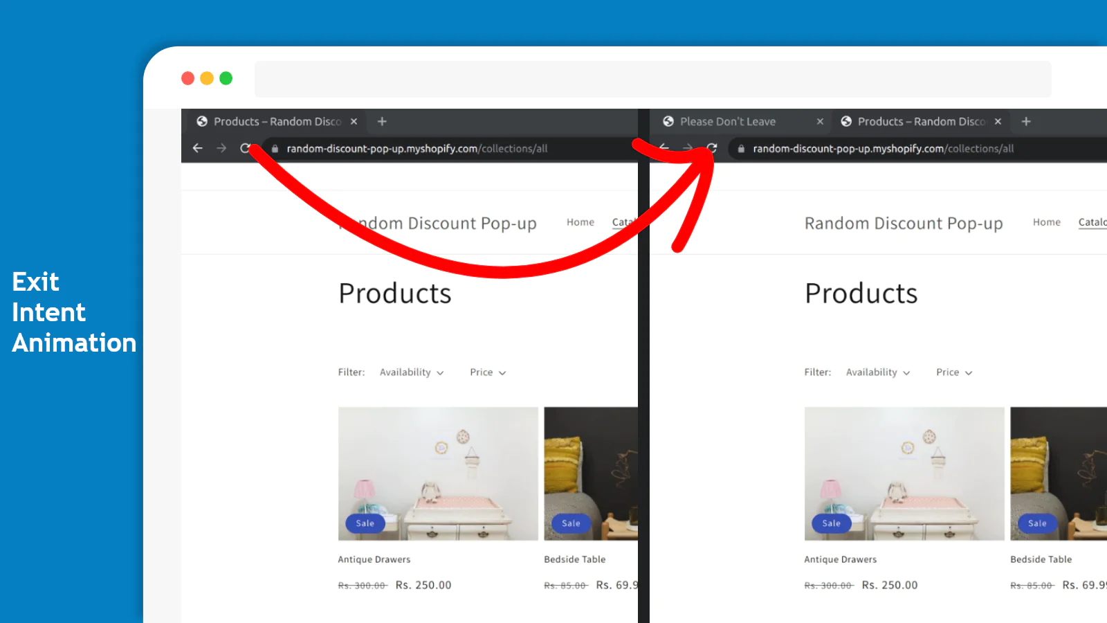 Exit Intent Animation : Add an animated page title animation on exit intent for holding customer back to store.