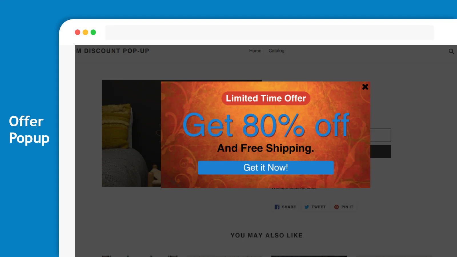 Offer pop-ups are doubtlessly the effective way for catching users’ attention and helping users focus on one important message. With the app, you get 100% control over the pop-up with customizing ability and enabling or disabling popup. A popup discount can provide a push for first-time buyers and repeat customers alike. Two-step popup: the form appears to the most engaged users who have already clicked “YES.” It can be customized like “10% OFF on your First Order”.