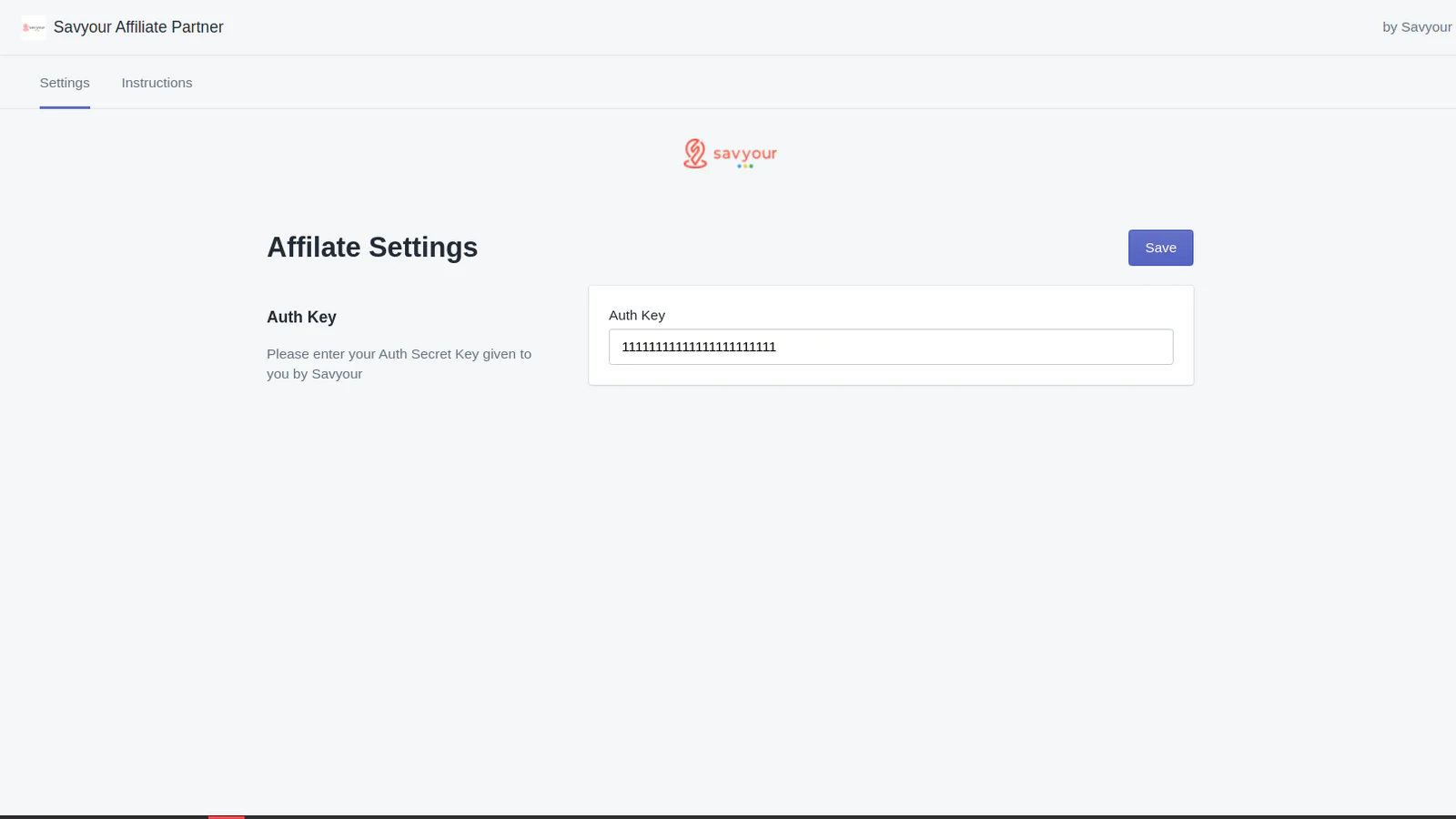 Frequently Asked Questions 1. What is Authentication Secret Key? A: It is a key - a set of numbers - used to connect the host website with the Savyour Affiliate Library. 2. How could I get this key? A: Authentication Key would be provided to you by Savyour. 3. What data is transferred? A: Data related to the number of customers visiting our partner website, and of those who used Savyour and ended up on our partner's website.