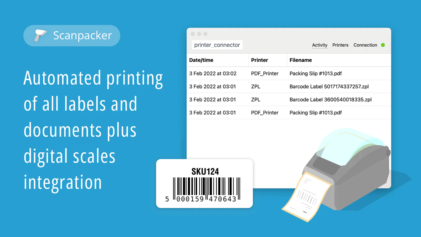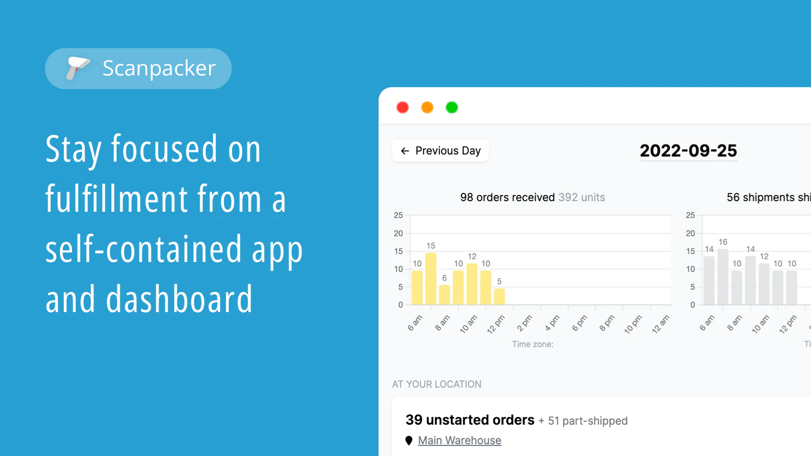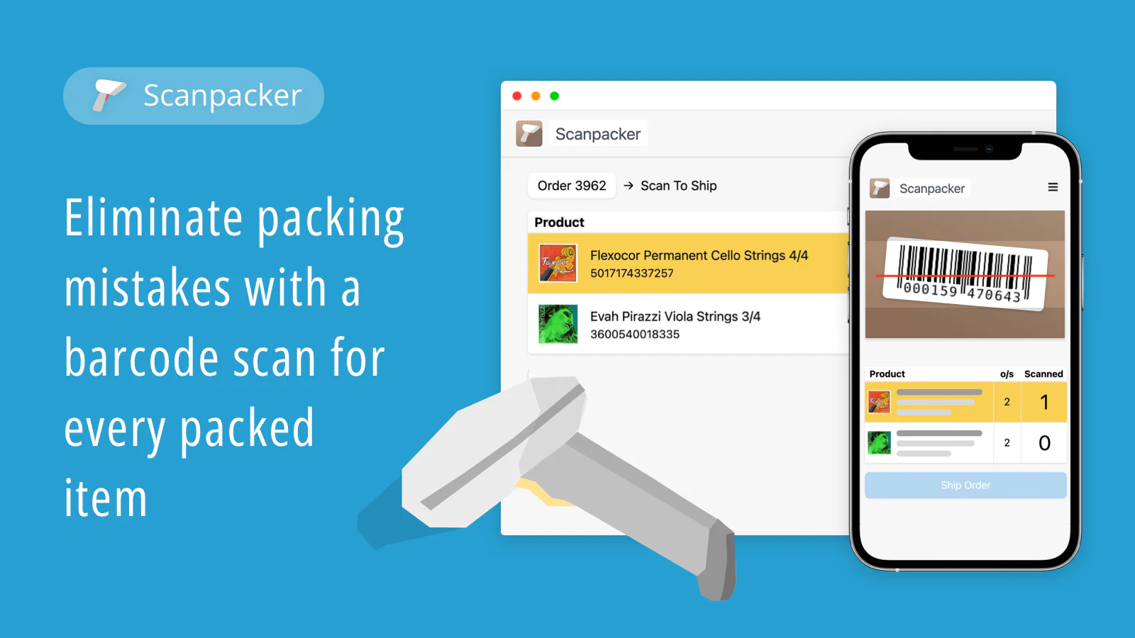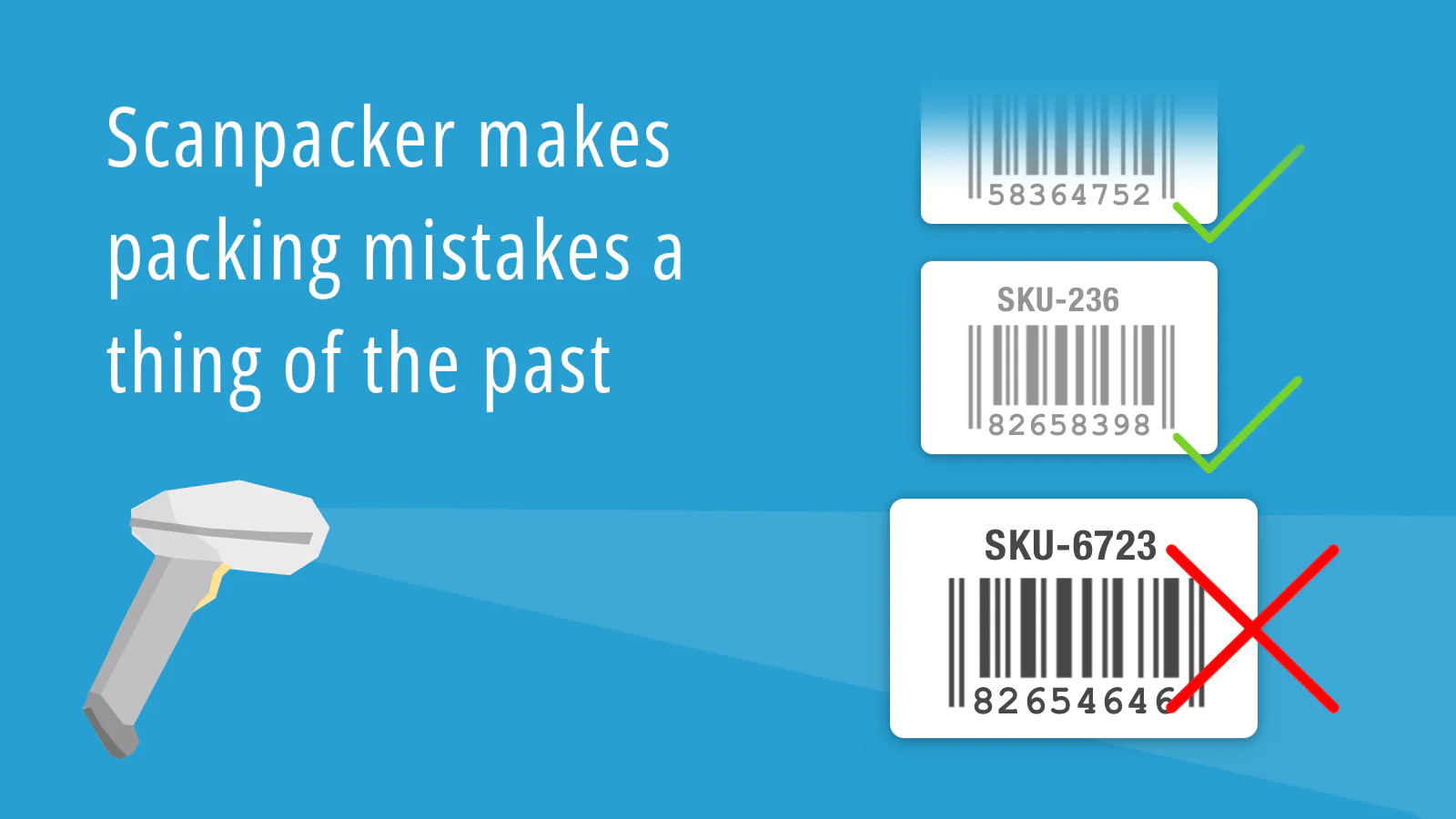 Scanpacker allows the packing of more orders in less time while reducing fatigue and mistakes. It does this by providing a streamlined packing workflow where each shipped item is confirmed with a barcode scan and manual clicks and user-intervention are reduced to the bare minimum.