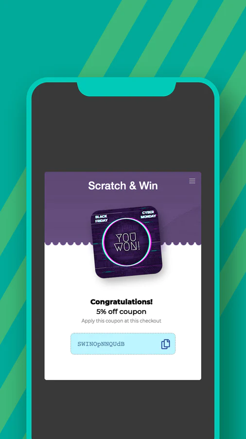 You can display the scratch card anywhere including as a page on your Shopify store, Facebook tab, Blog, etc. It is 100% mobile and Google friendly