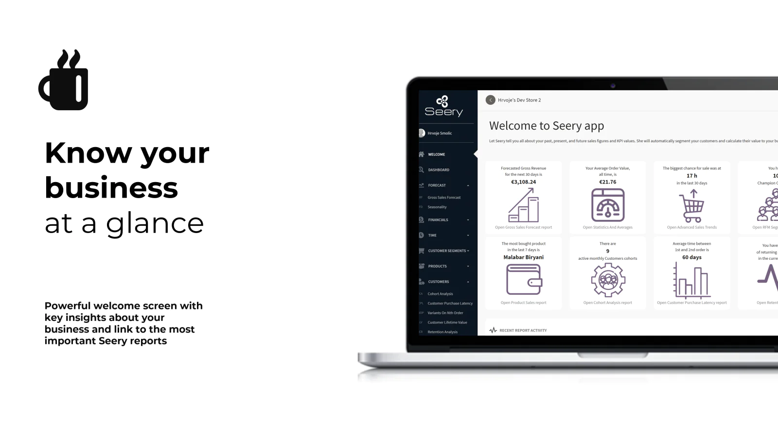 After installing the app and connecting to your data, Seery will sync your orders and line item history. Advanced machine learning algorithms will then learn all relevant info about your business and your data. Once learning is over, you are ready to go!