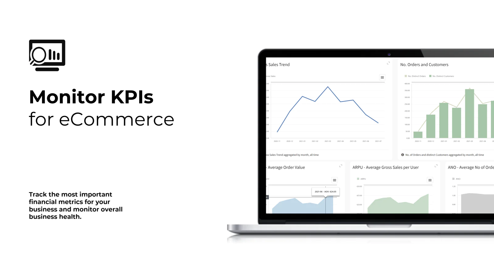 Statistics and Averages - track one of the most important metrics for your business and monitor overall business health. Average order value (AOV), Average Revenue per User (ARPU), Average No of Orders per Customer (ANO), and more, with historical trends.