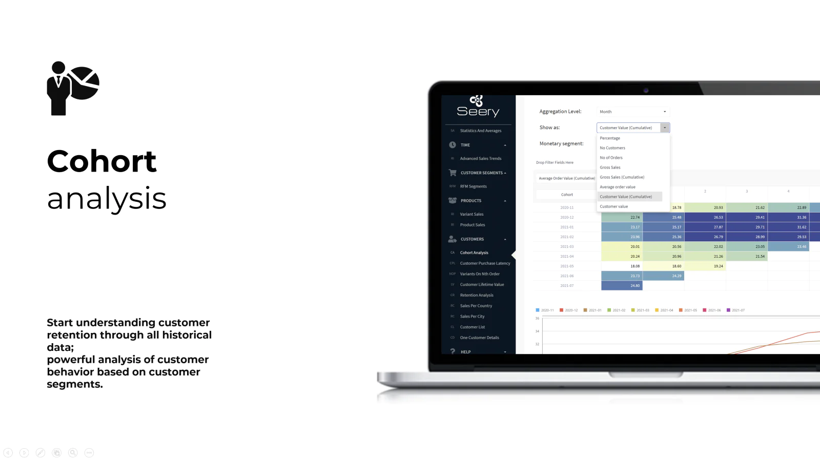 Cohort Analysis - start understanding customer retention through all historical data; do a powerful analysis of customer behavior based on customer segments.