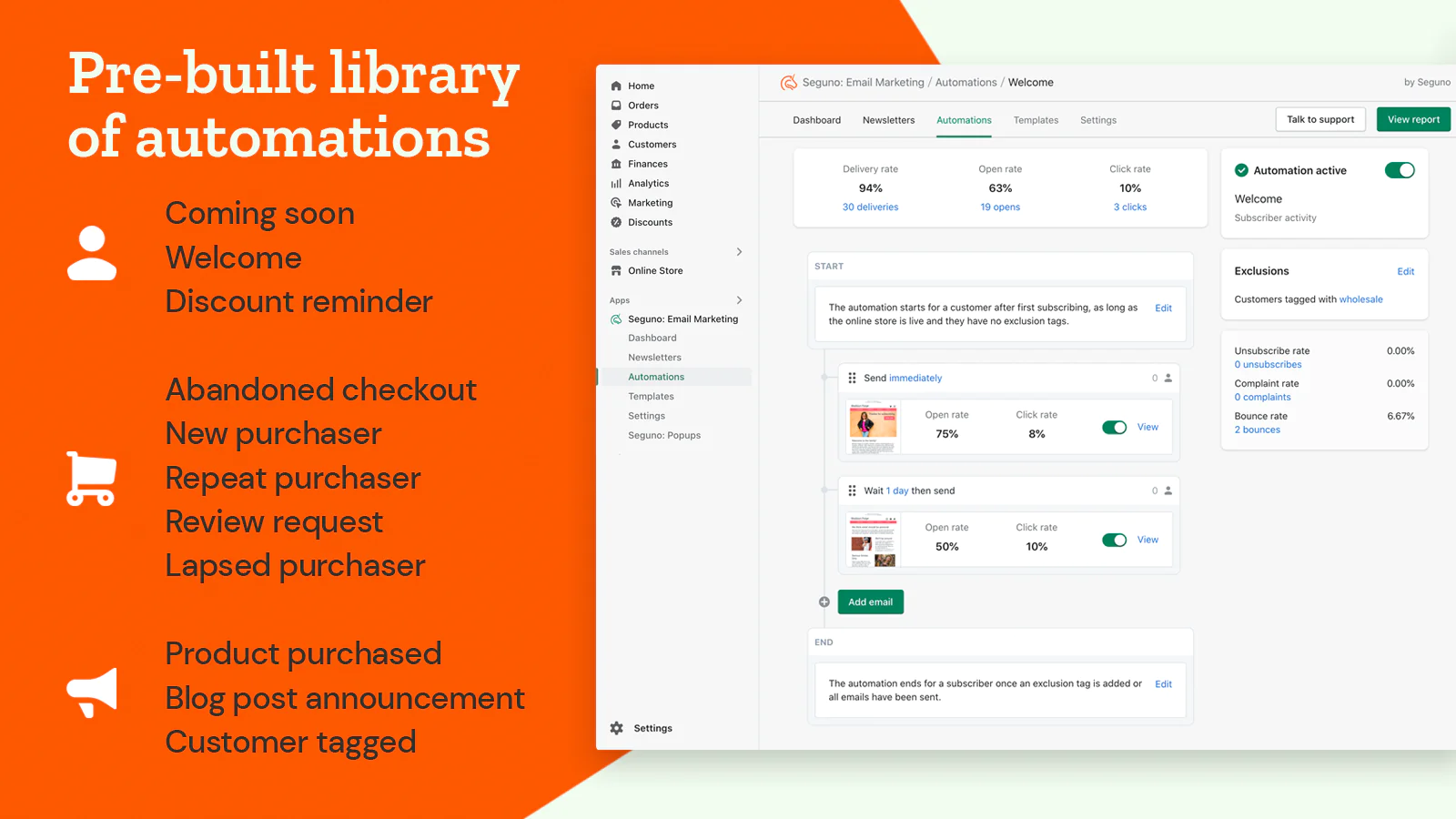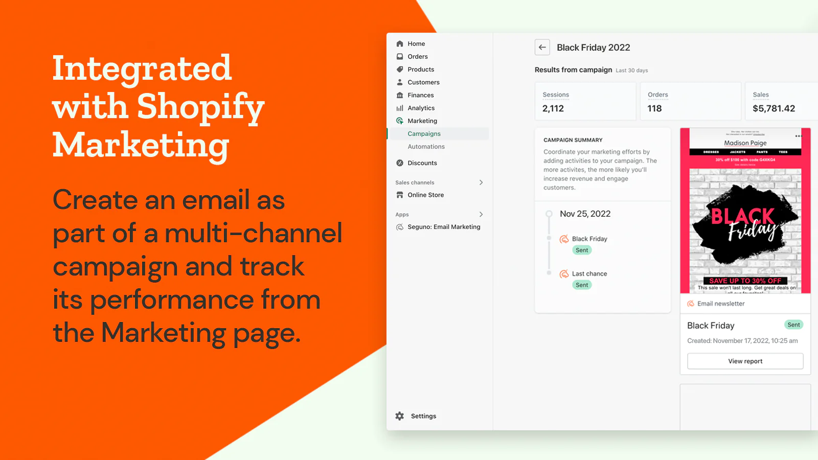 See how much revenue was generated from your emails right in Seguno and Shopify marketing reports so you can measure the impact.