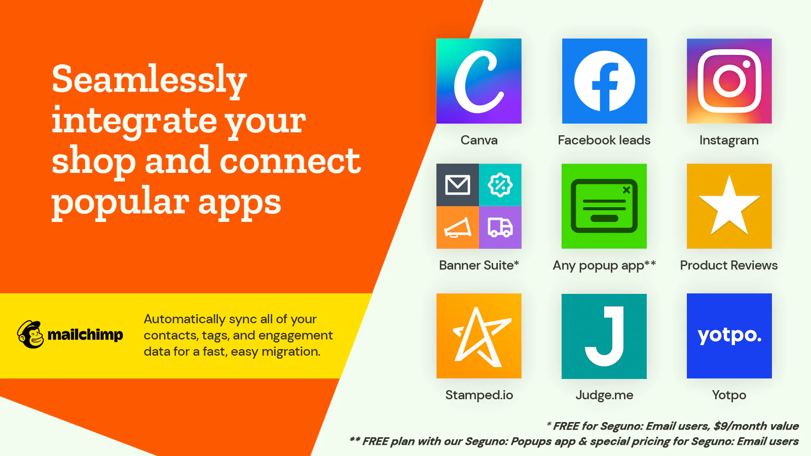 Seguno is the top-rated email solution built exclusively for Shopify... Running a shop means time is your most valuable asset. Other apps that serve all commerce platforms or the enterprise will slow you down. Seguno was built to save you time.