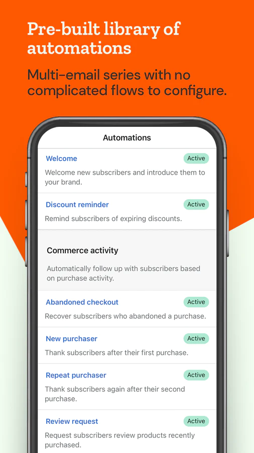 Save time via email automation : Sophisticated email marketing technology made effortless: baked-in best practices and one-click automations mean more time for the business.
