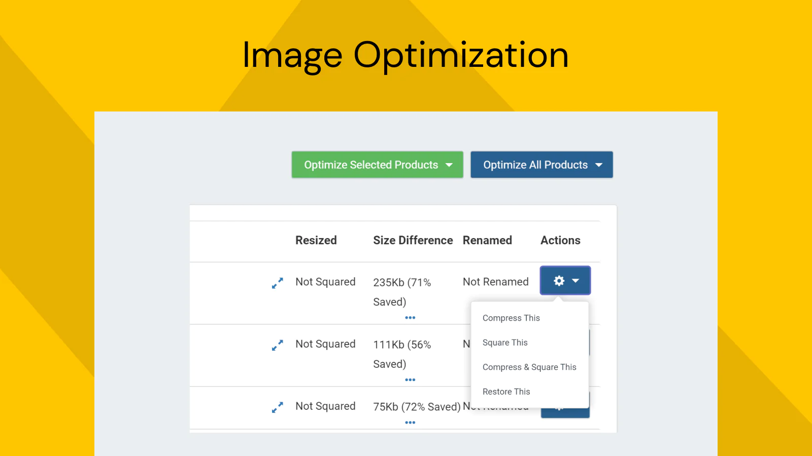 Compress Images : Speed up your store & improve SEO by optimizing images. Compressed images = Quicker page load time.