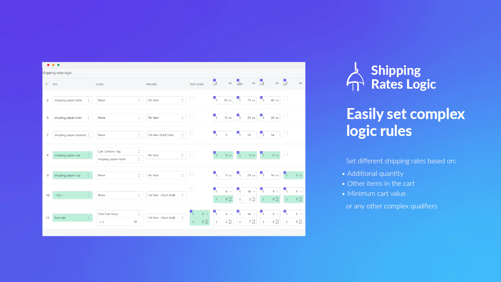 No Coding Experience Needed : No developer needed. A few simple clicks and you can set specific shipping costs based on product, location or other complex qualifiers.