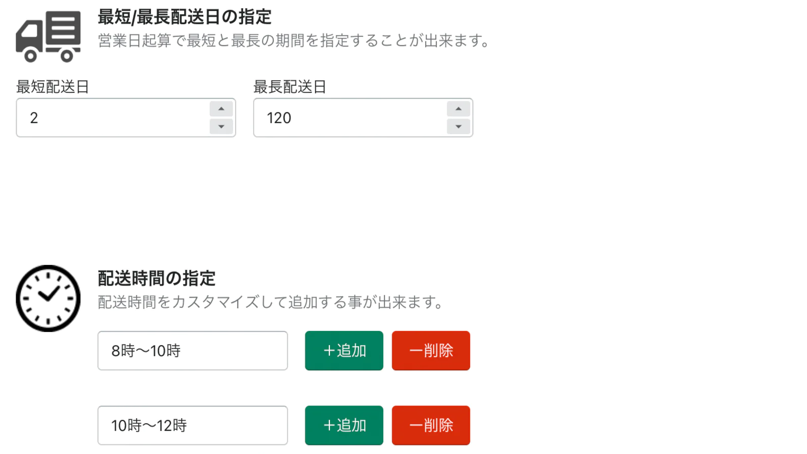 Customizable delivery times : You can set the delivery time selections as many as you like with free input.