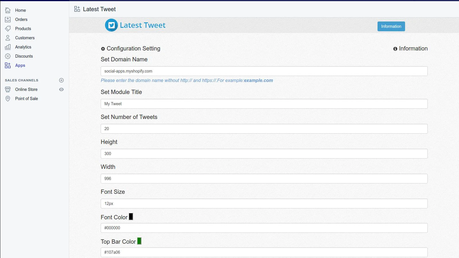 Shopify Latest Tweet - The App will display all your latest Tweets at your Stores Front.