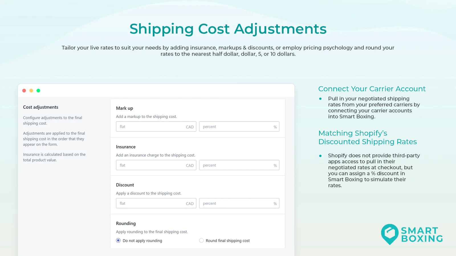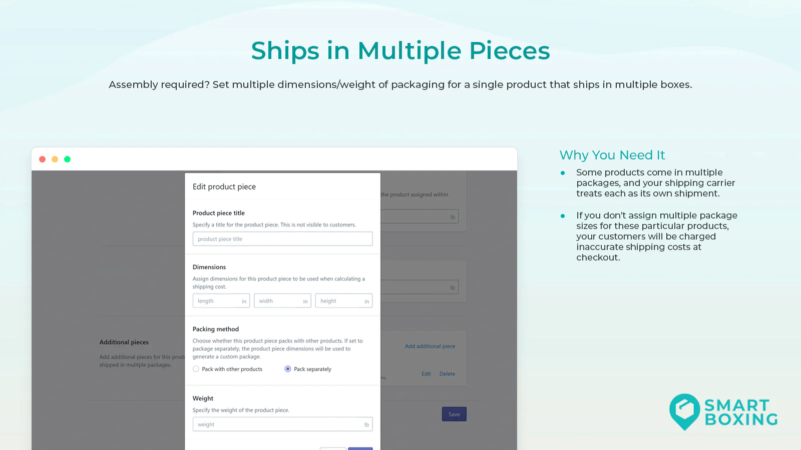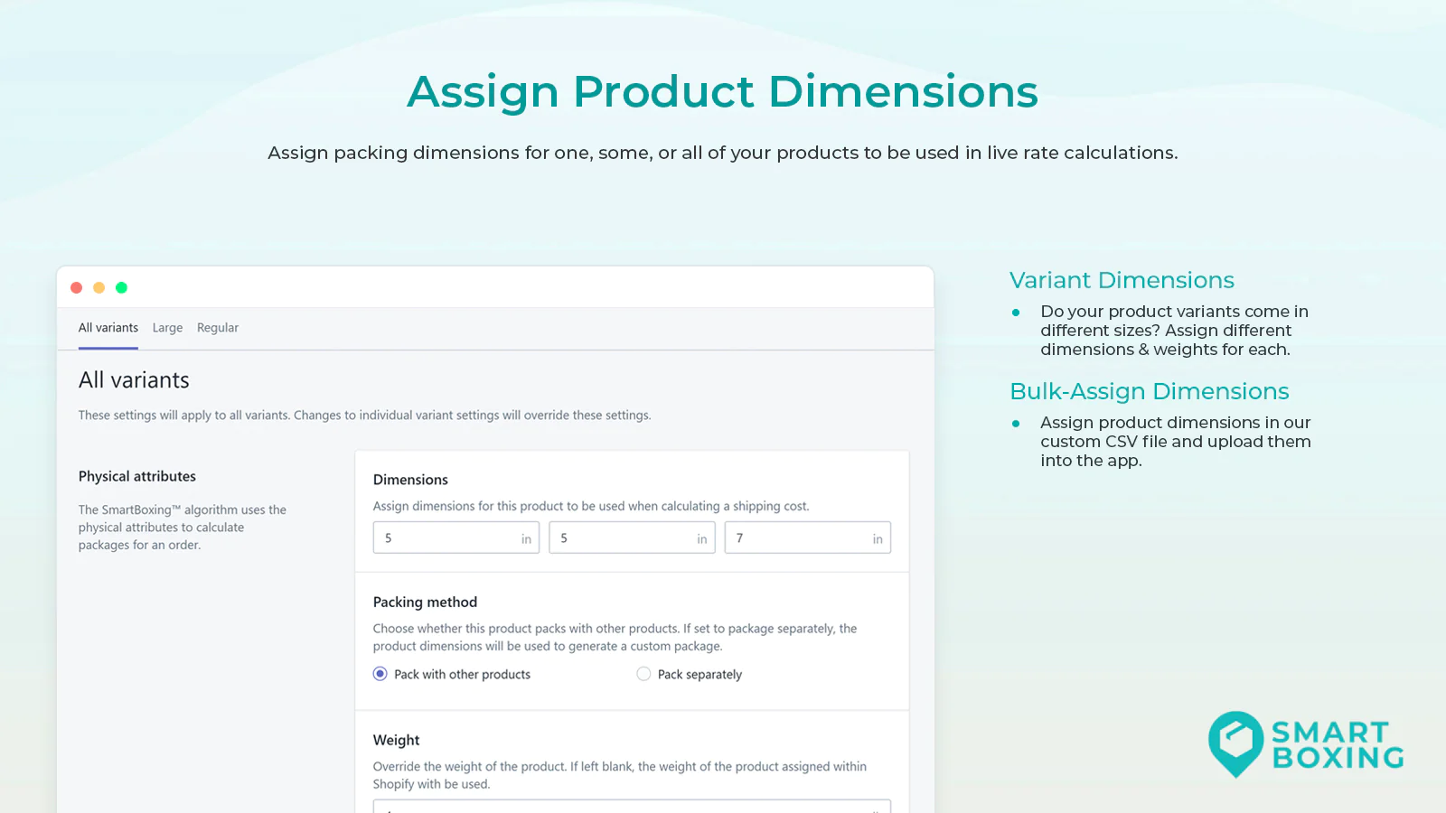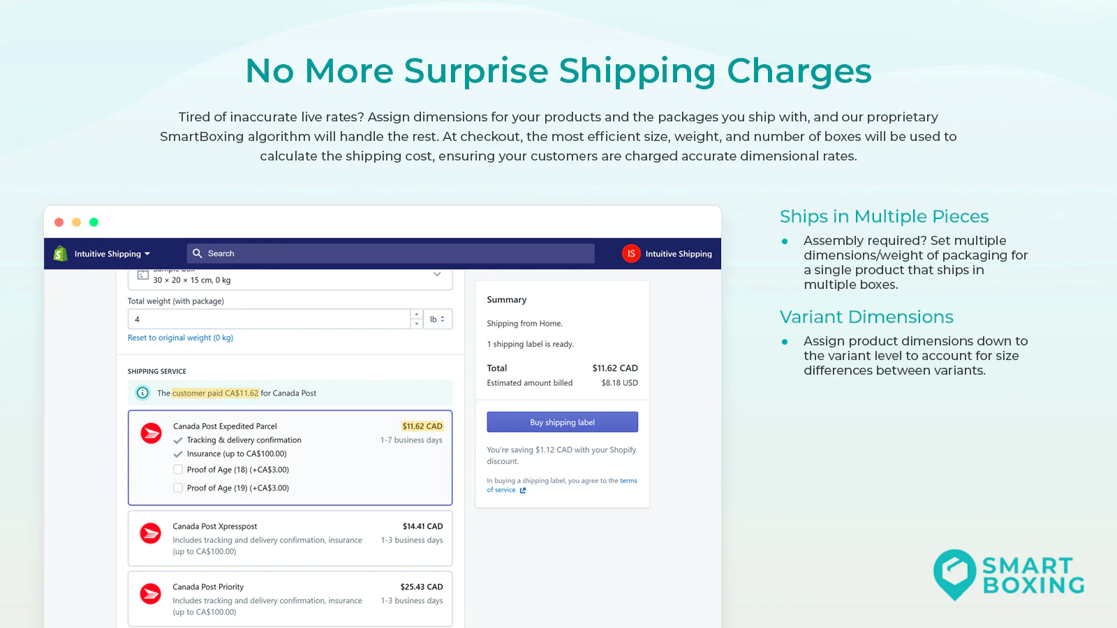 Accurate Shipping Rates : Smart Boxing uses your products' dimensions and weights to pack orders at checkout, charging your customers accurate live shipping rates.