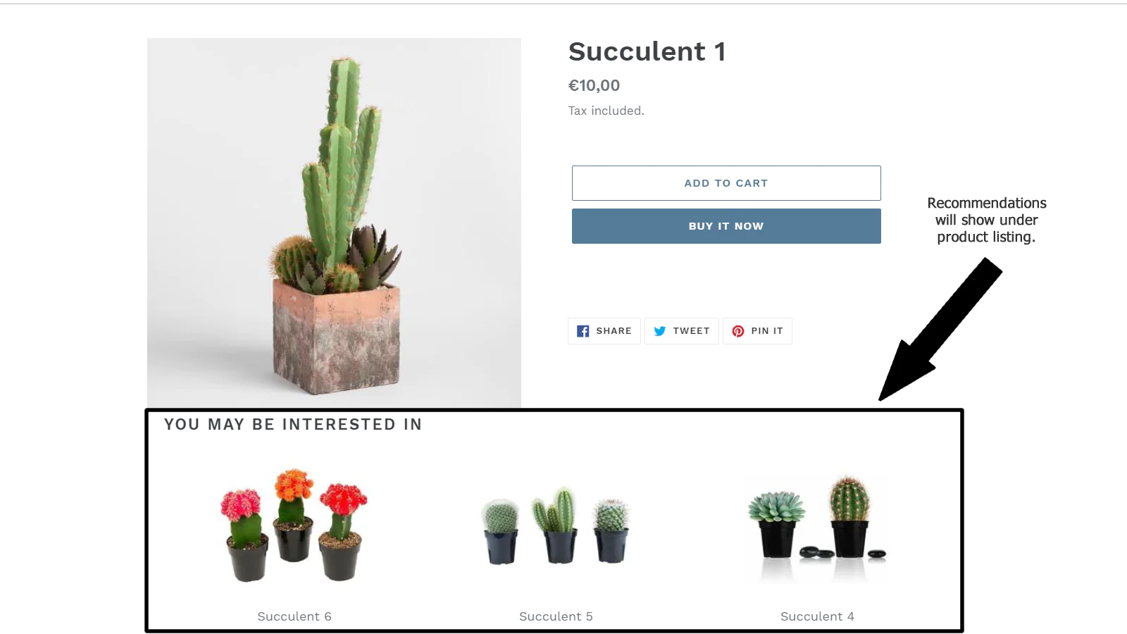 Except clicking "Install" button, there is no extra work or knowledge needed to install the app and make it work. After the install, the recommendations for each product will show up on your store just under the product listing.