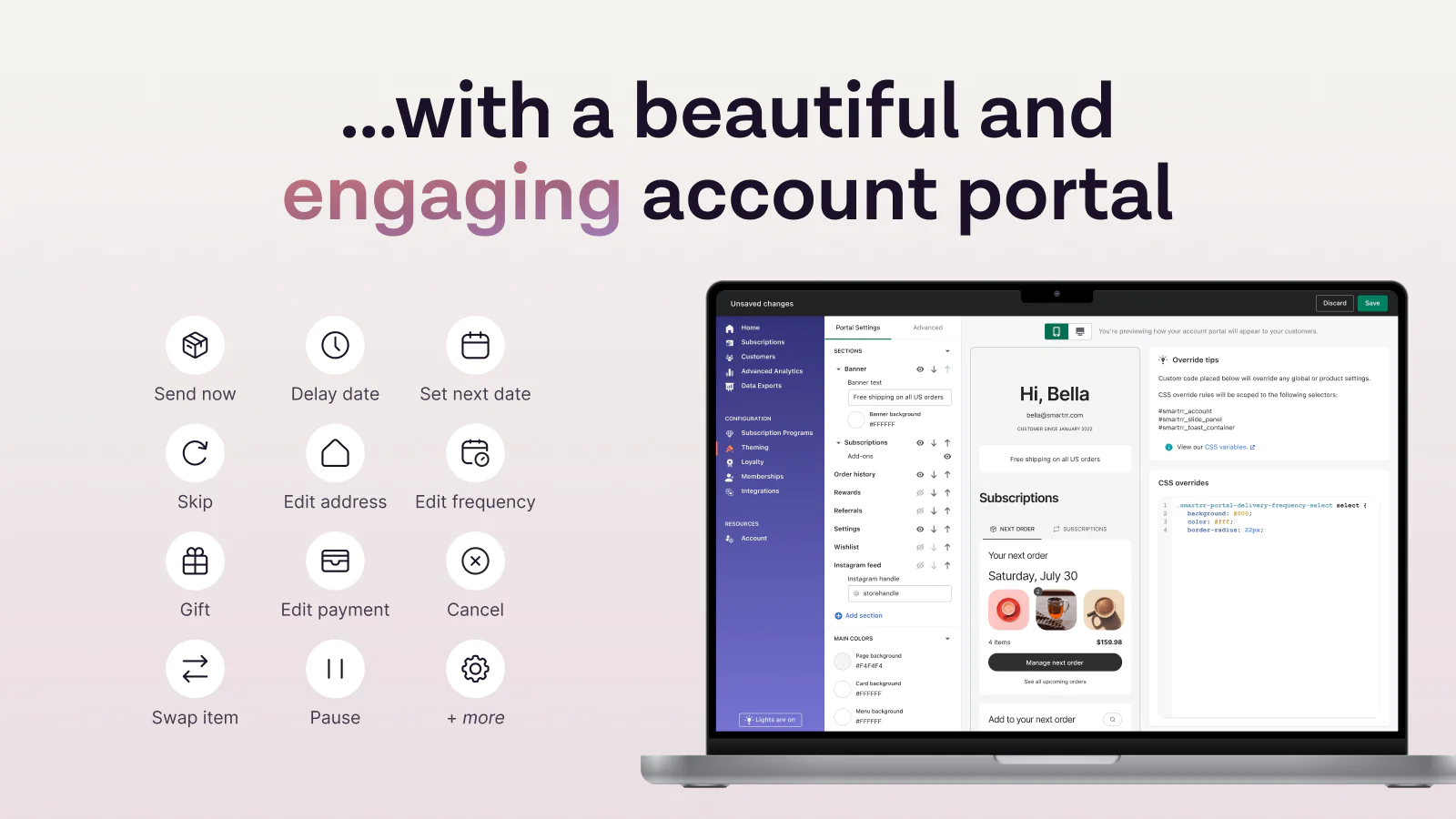 Branded account portal : Reject one size fits all: customers manage their subscriptions seamlessly through a beautifully branded customer portal.