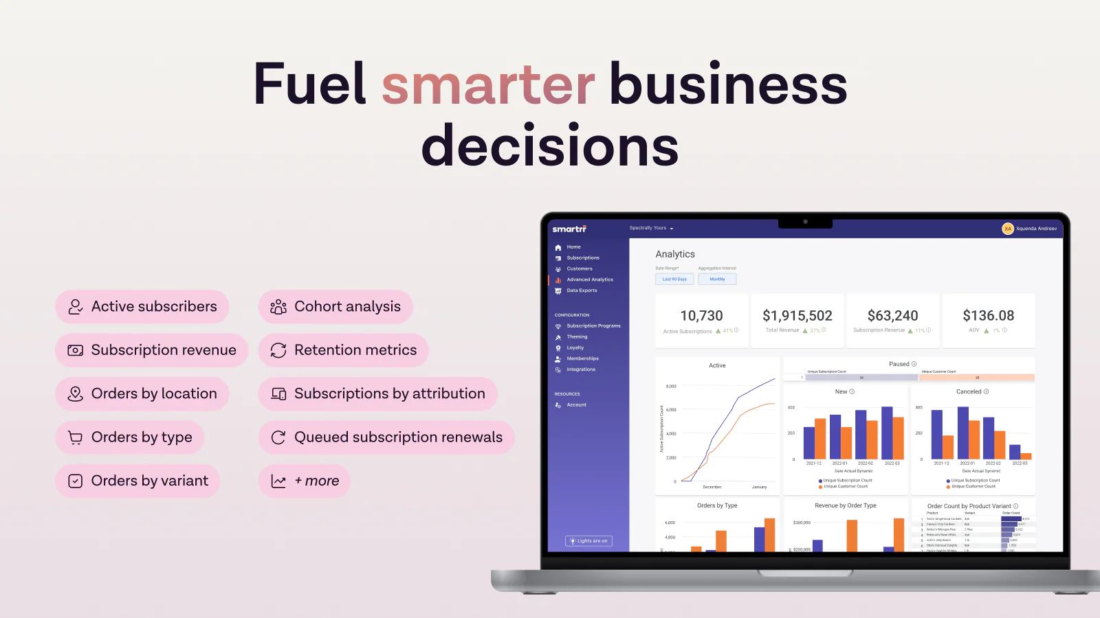 Don’t settle for the status quo on your business model. Get premium analytics to fuel intelligent business decisions and curate the optimal subscription experience.