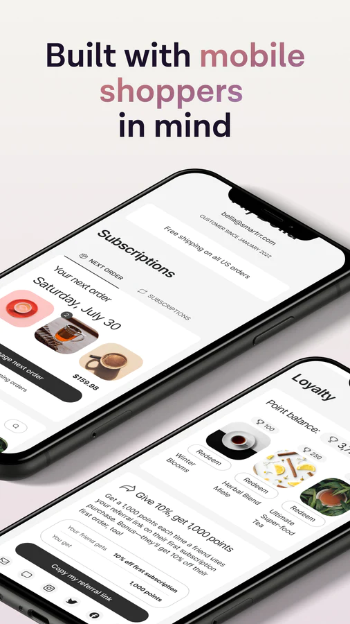 Kick off your customer experience with a seamless Shopify checkout, then go beyond “Subscribe & Save” with a variety of easy to implement subscription models that best fit your customers journey.