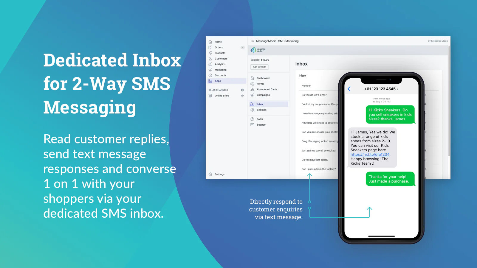 Grow brand loyalty : Keep your existing customers coming back for more. Send them special offers, back-in-stock notifications, and loyalty rewards via SMS.