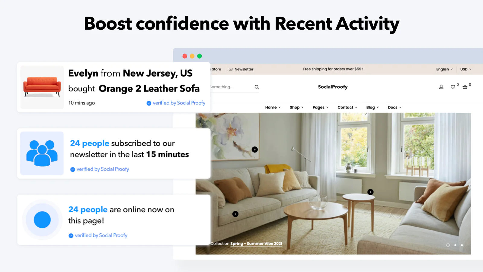 Show recent sales popups, recent conversion notifications to let your visitors know that it is safe to buy from your store. Build trust and boost your sales with the help of Social Proof.