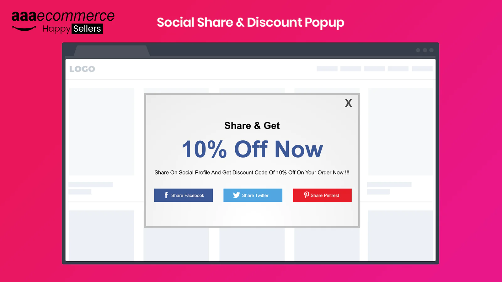 SOCIAL SHARE & DISCOUNT POPUP : Give Offers and Discounts to Customers for Sharing your Products on Social media. Increase engagement on this Black Friday & Christmas sale.