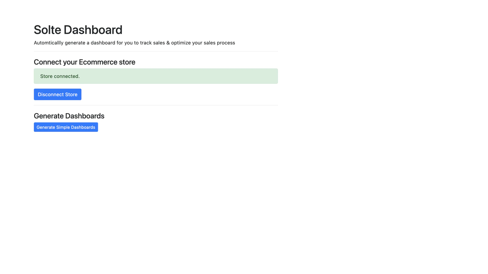 Solte Graph helps merchants generate simple dashboards to begin tracking their store metrics.