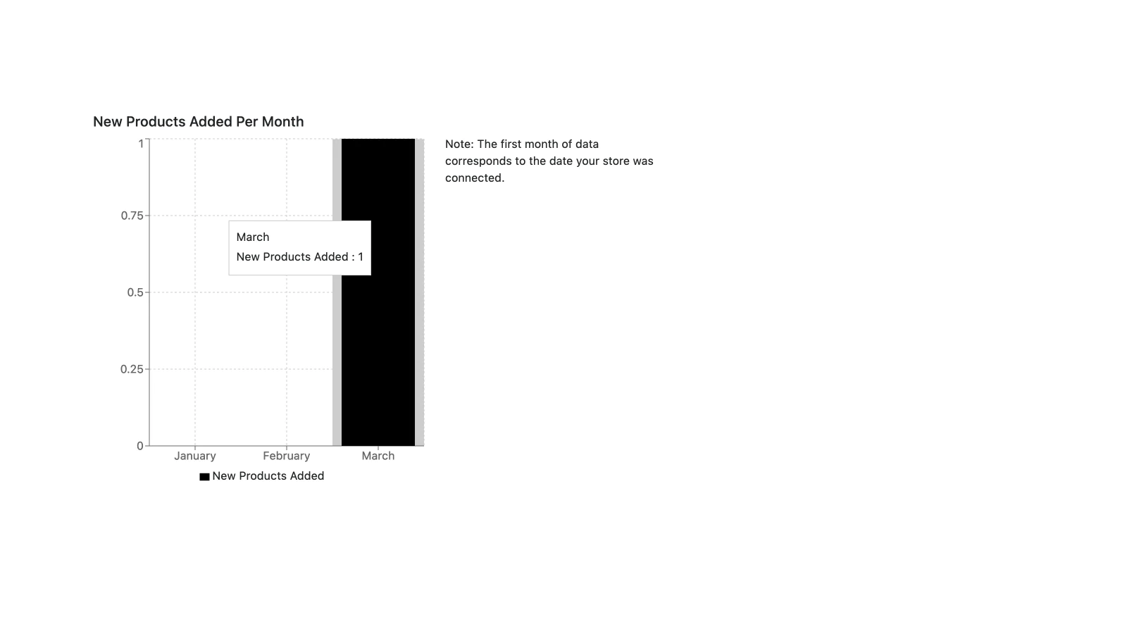 We provide an dashboard observing new products added over the last 3 months so you can track growth in your products. You can compare the graph with orders graph to see correlation between the data.