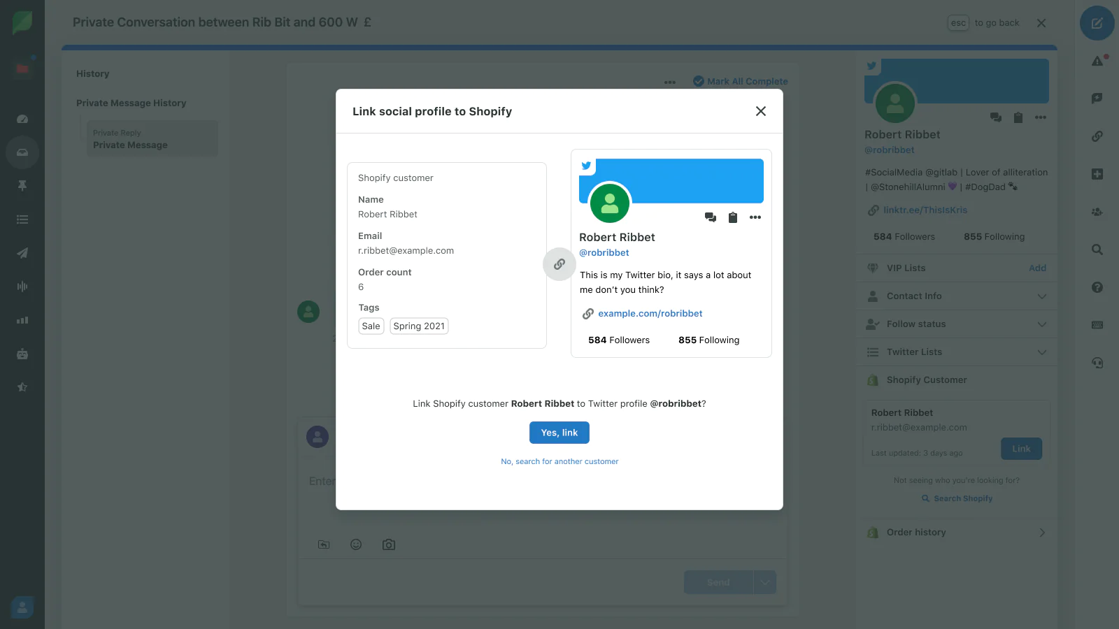 Find Customers Easily : Link Social Profiles to Shopify Customers through suggestions or searching to view up-to-date Customer details
