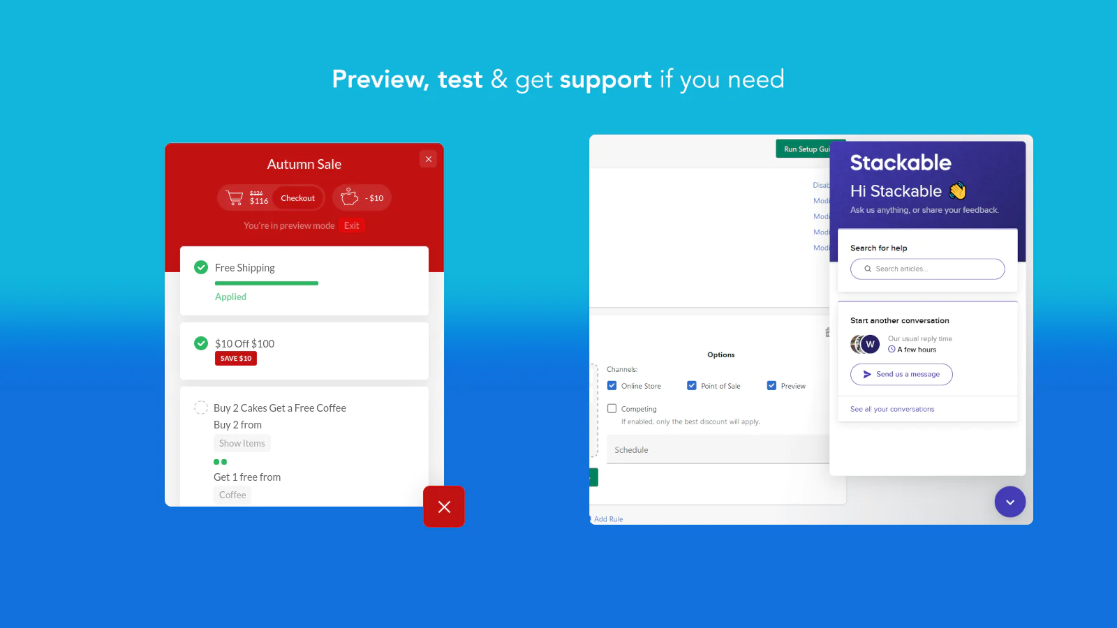 Preview your campaign discount stacks before publishing to ensure different baskets of items work seamlessly.