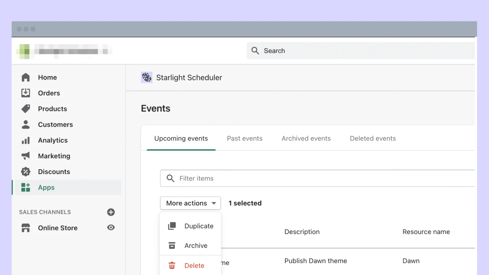The Starlight Scheduler app comes with a simple and clean user interface which makes it easy to create, duplicate, archive and delete scheduled events.