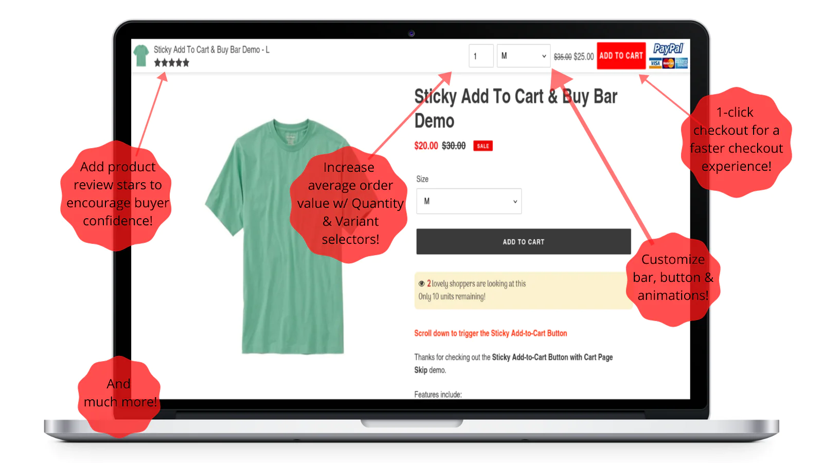 Boosts Conversion Rates : Boosts conversion rates with attention-grabbing buy button animations, variant selector to increase order-value and much more
