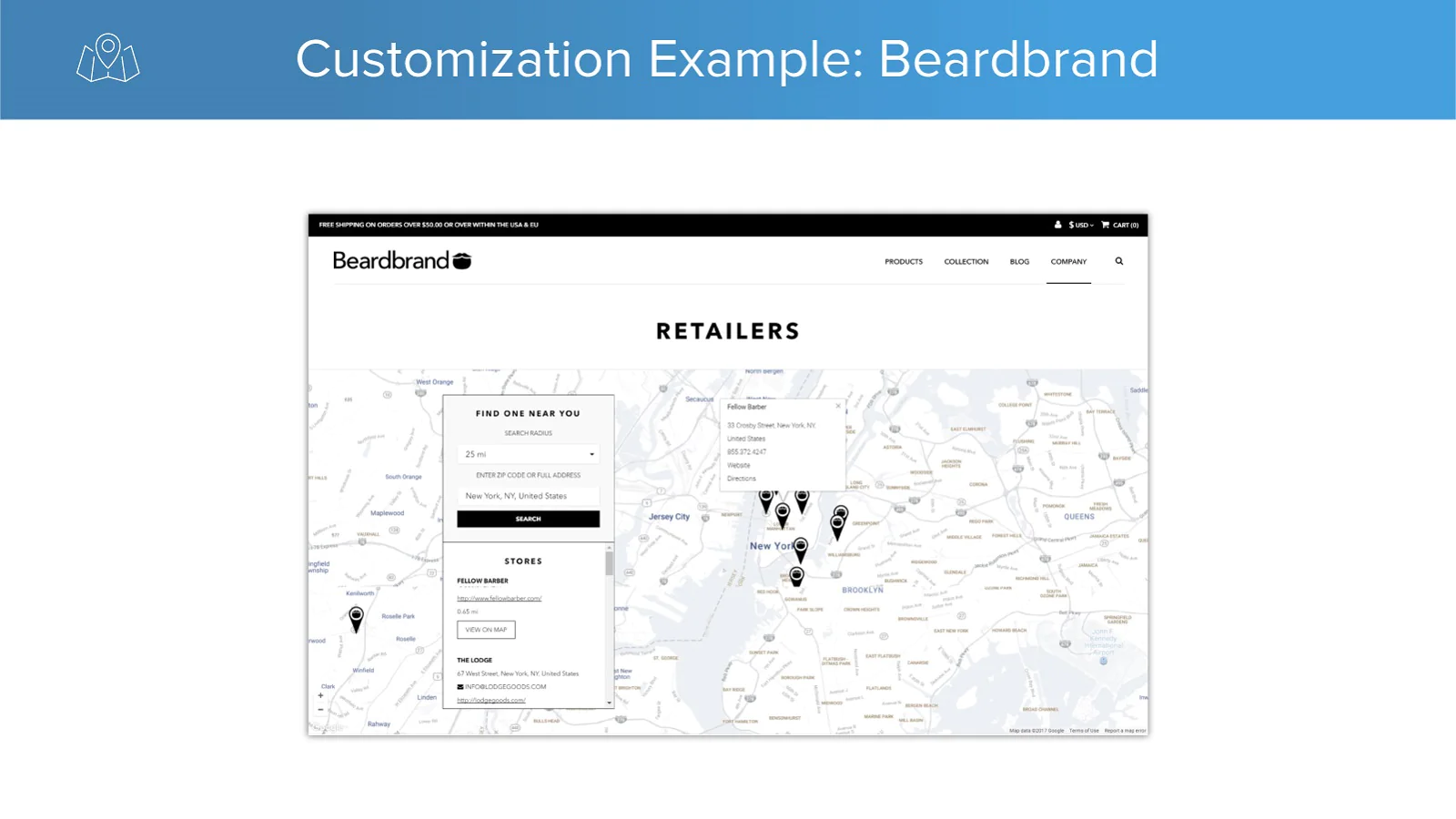 Works with all Shopify themes : Store mapper integrates with any Shopify theme, fully customize design and colors with CSS. Then add locations to anywhere in the World.