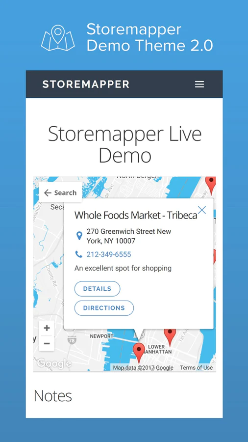 Easy to install store locator : Drive traffic to your store locations, dealers, or distributors on desktop, mobile or tablet. Google maps and directions make it easy!