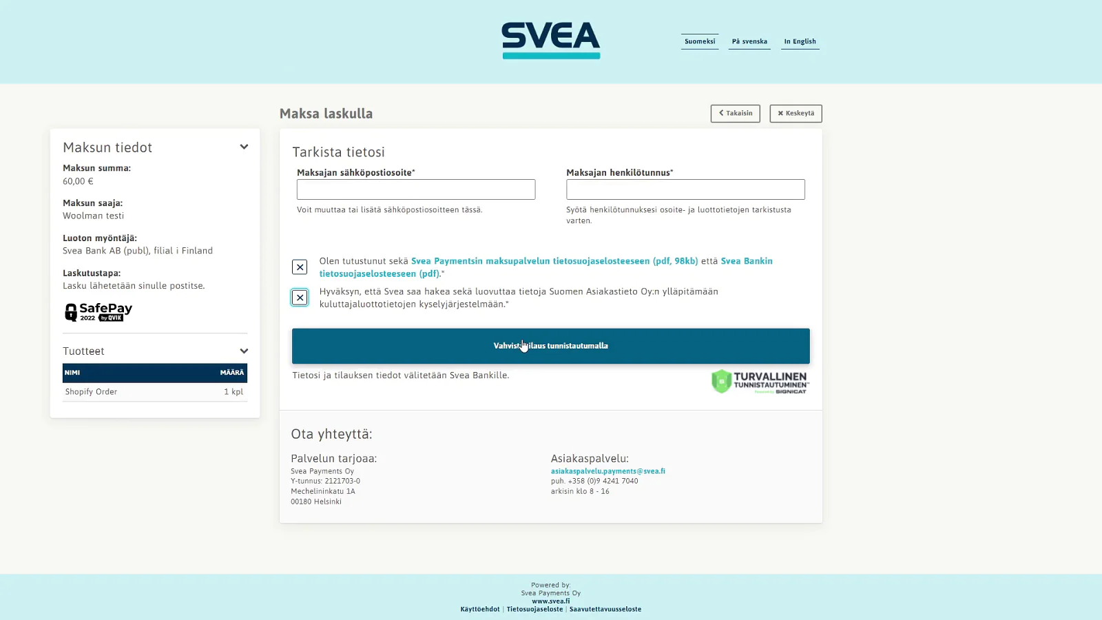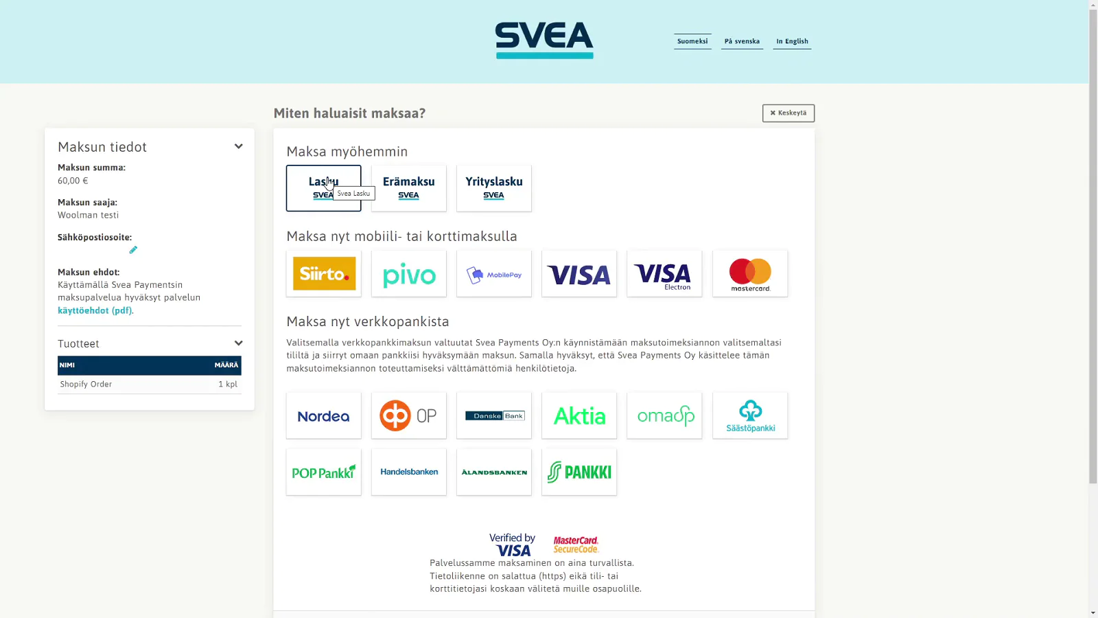 Svea Payments is a one-stop-shop for all Finnish payment methods, including bank payments, card payments, mobile payments and invoices.