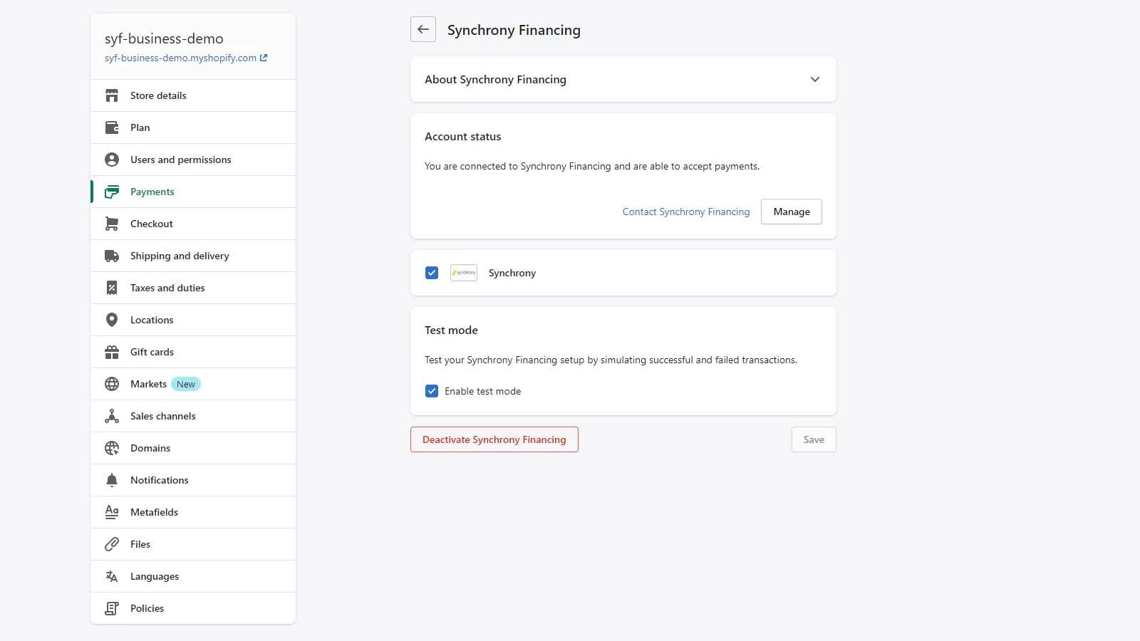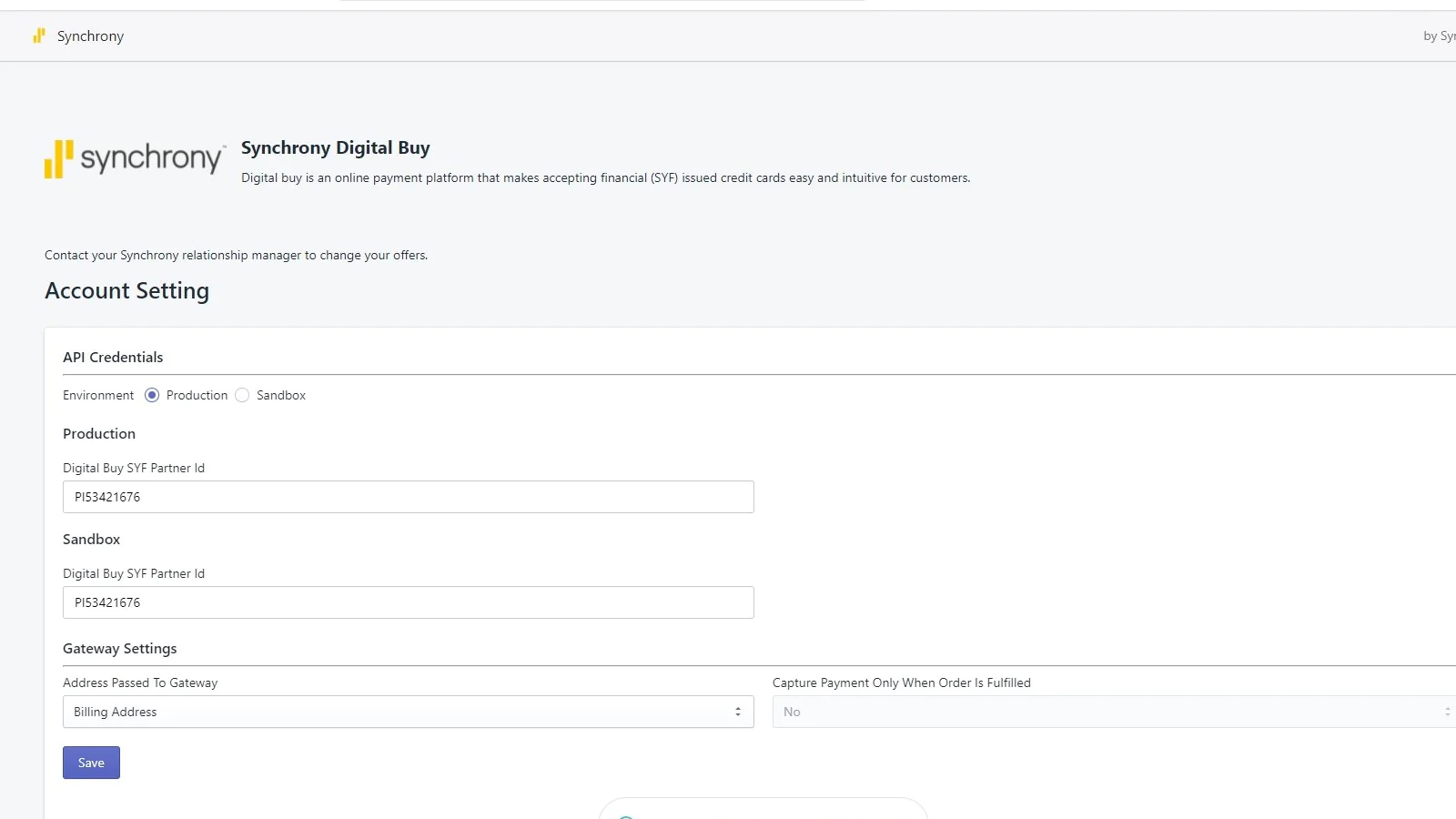 Adding the Synchrony App to your Shopify Checkout pages enables easy integration of our Synchrony payment app solution, which allows you to support customer credit applications and purchases with a Synchrony payment option online. All authorizations, captures and refunds are processed through Shopify using Synchrony Payment API's.