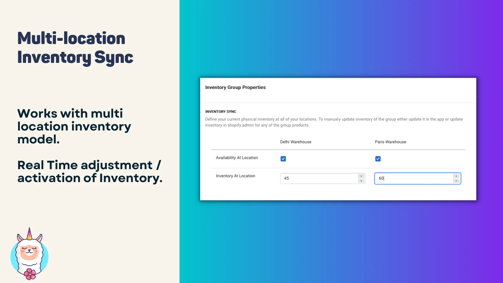 Multi Location Sync : Easily share inventory between locations of same store or multiple shopify stores.