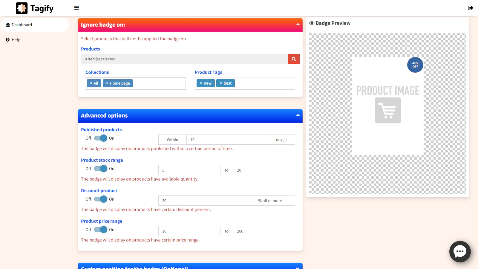 Our app will allow you to add customized product badges to your website. These badges will inform the customer of specific product offers, sales, promotions, etc.