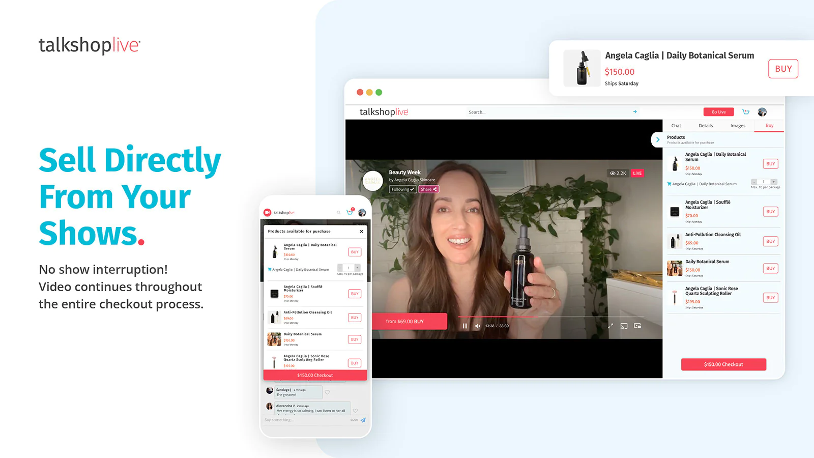By joining TalkShopLive, your video content will also stream on our fast-growing marketplace, exposing you to millions of new buyers! More opportunities to sell, higher conversion, fewer expenses on marketing!