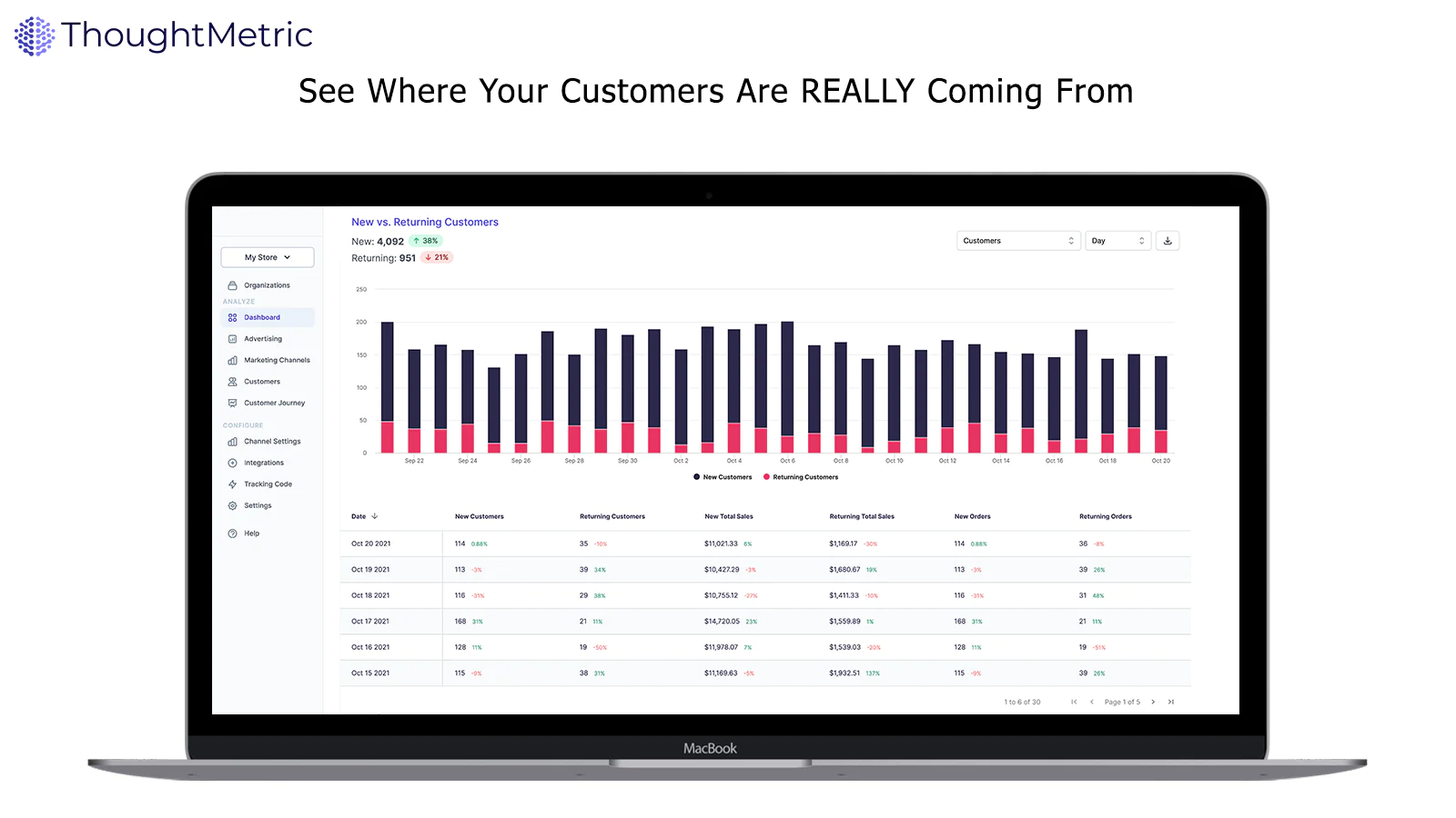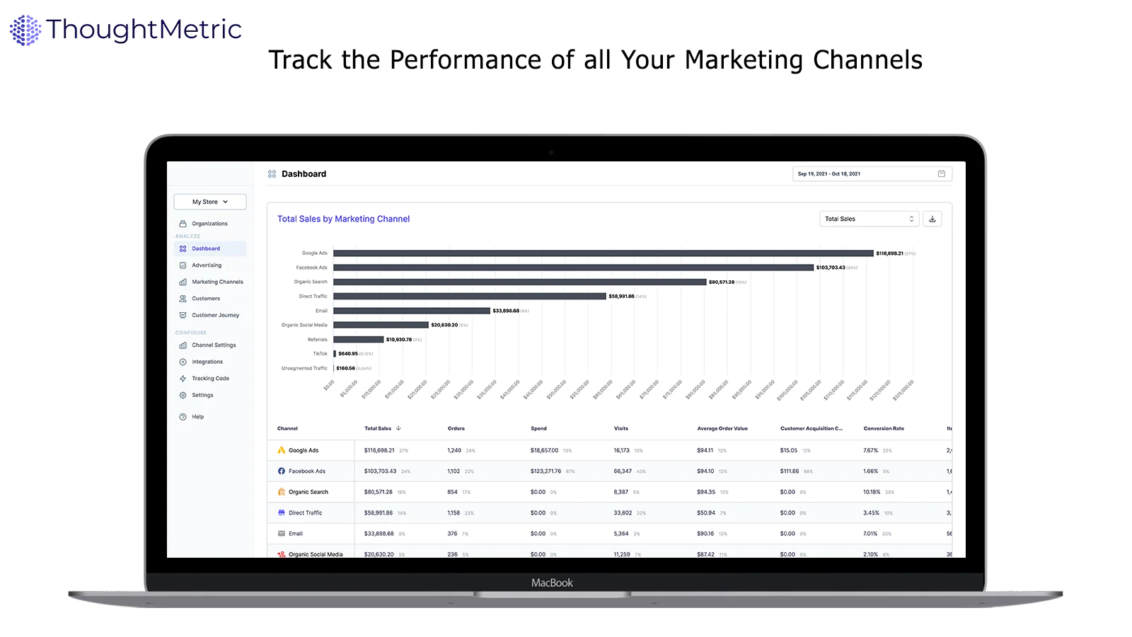 Don't settle for a world where all of your marketing data is siloed and every channel takes credit for the same conversion. With ThoughtMetric, you can see your true marketing ROI across all your digital channels. ThoughtMetric detects the true source of a conversion using a suite of customizable rule based attribution models.