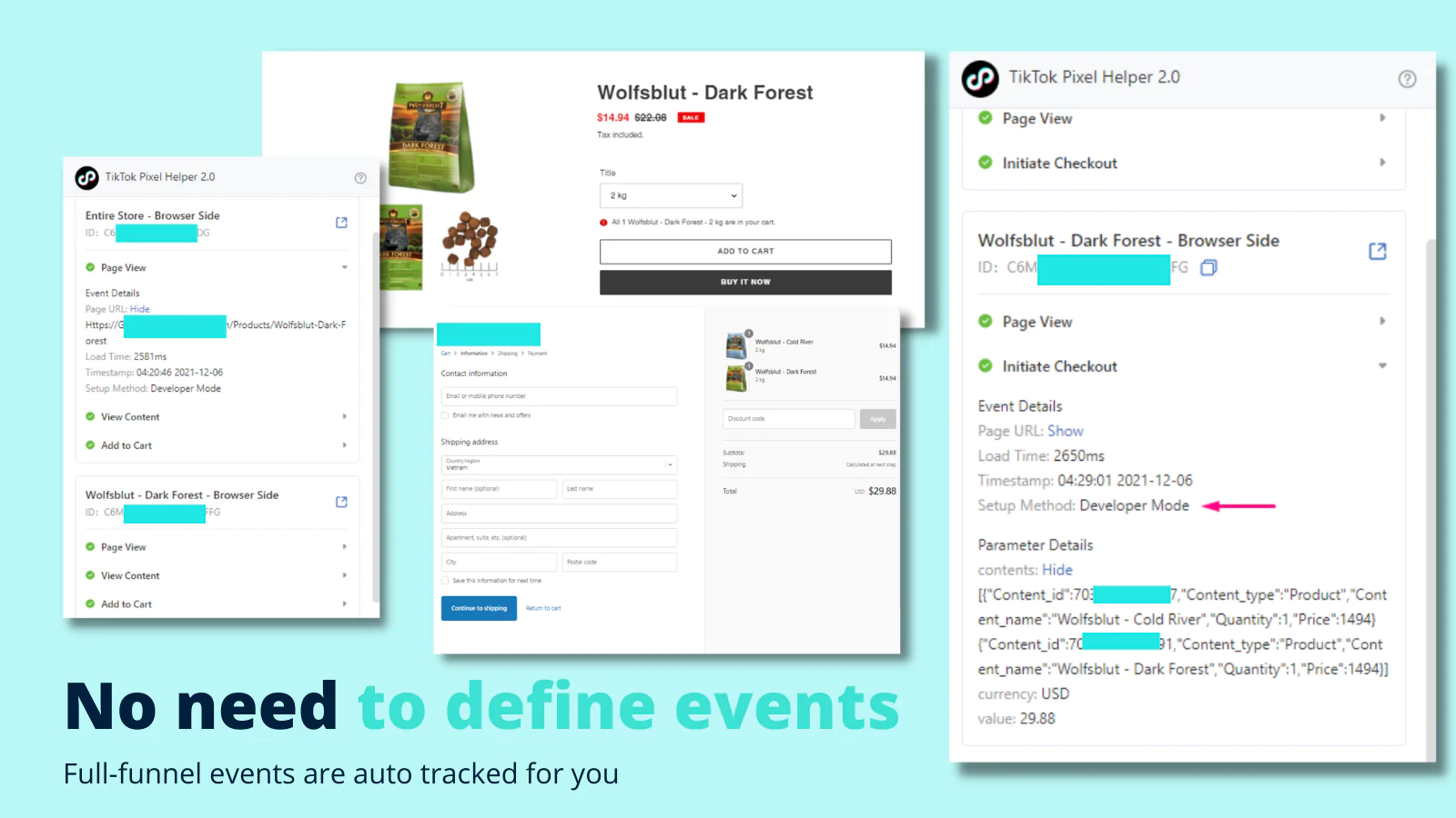 🌊 Easier TikTok ads workflow : Manually define events in Event Manager? No need. All done for you. Easily install Developer Mode TikTok Pixels for many further advantages