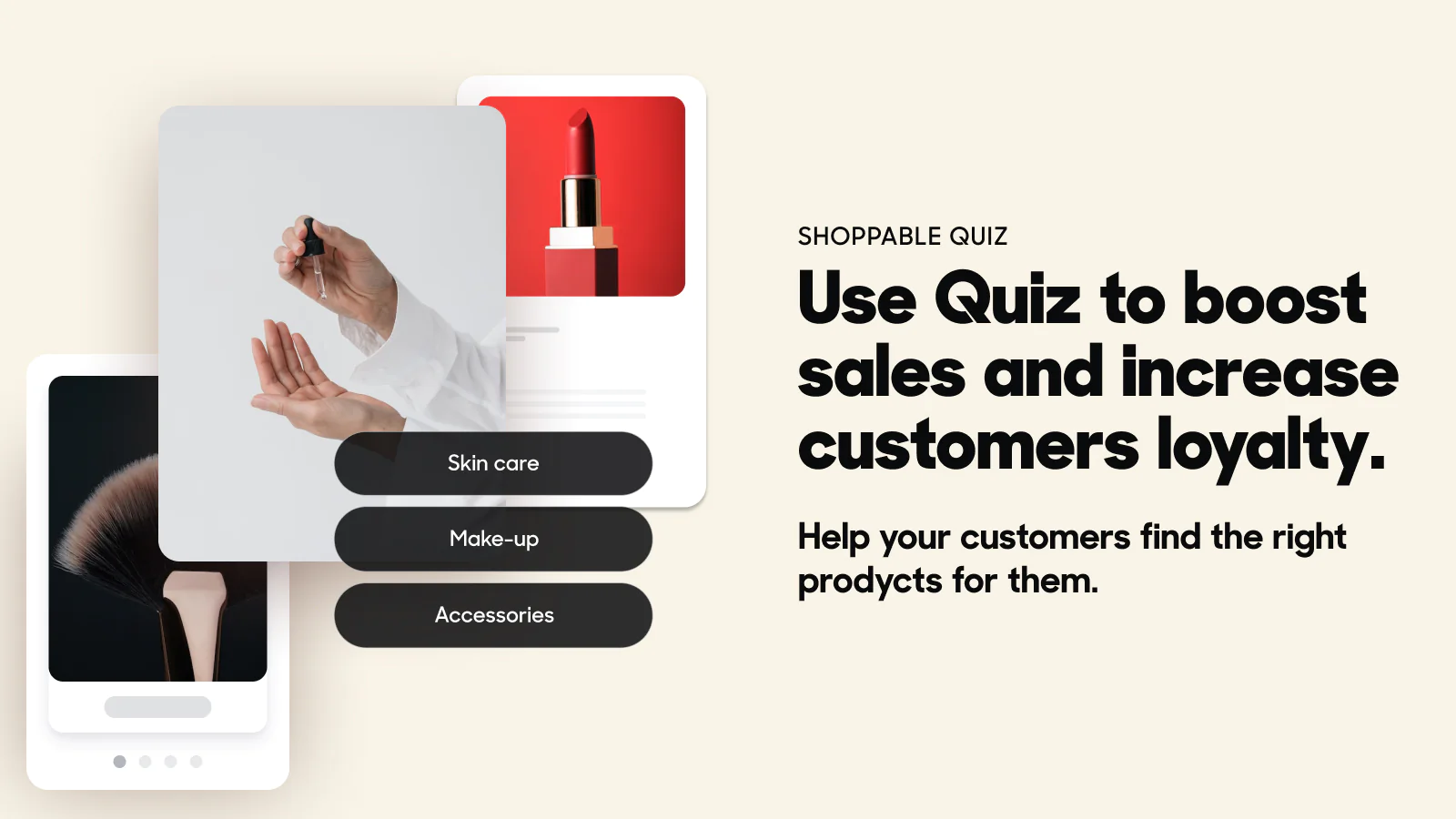 Video quiz, recommend products : Easily create an amazing video quiz or quizzes to personalize your shoppers’ experience and increase conversion rates. Recommend products!
