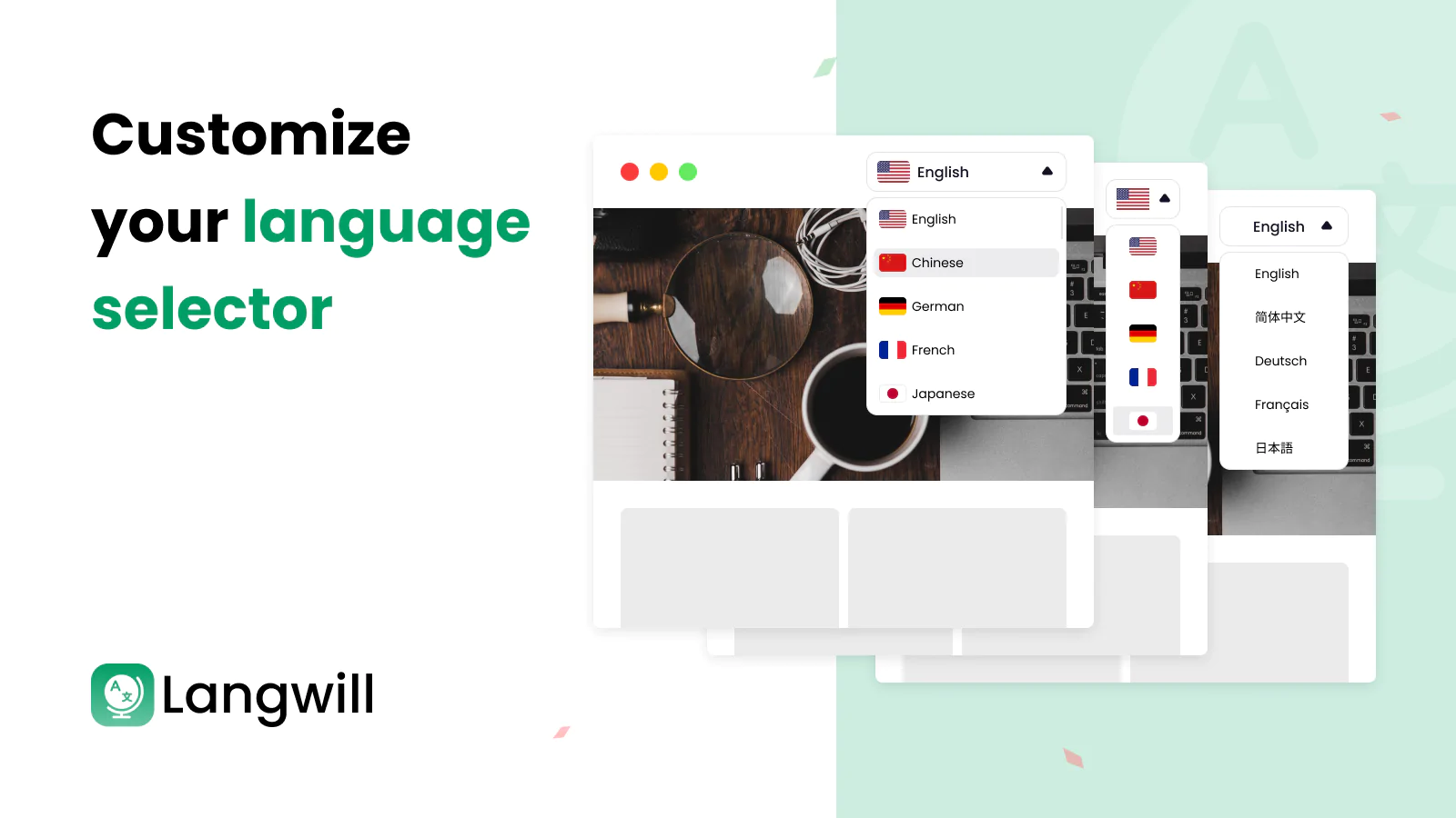 - Customize the language selection widget on your page! The customizations that can be made include widget position, style, color, transparency, local name, language abbreviation, flags, language name, etc. Different widget customization settings are applied on the web and mobile pages respectively.