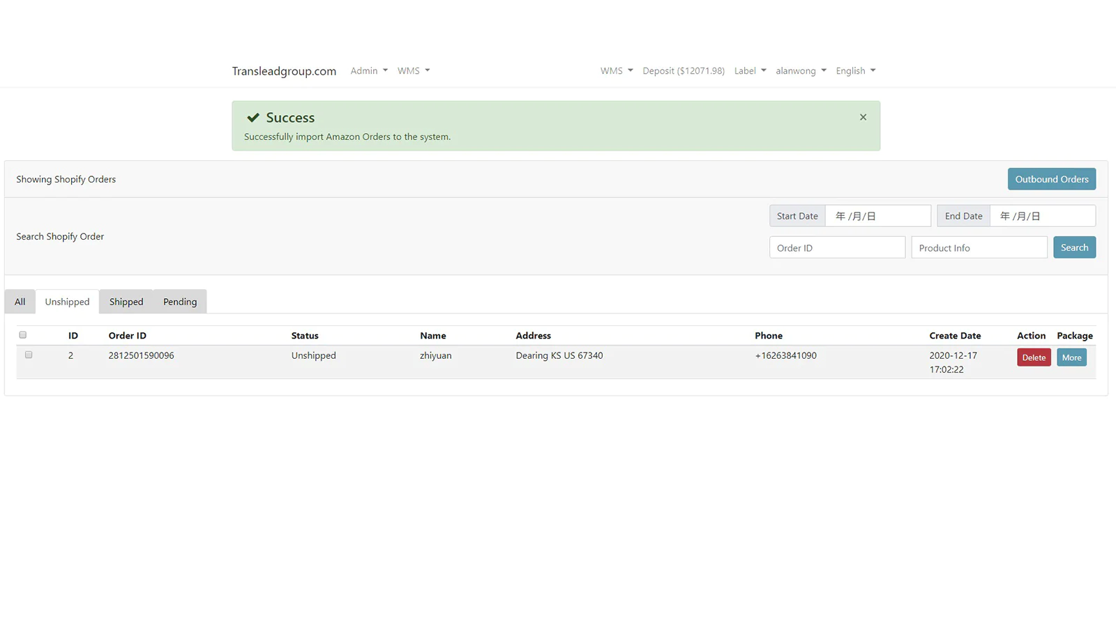 Translead Group App allows users to import their shopify store order into our system for order item storage management. Users can keep track with their item storage throughout the process of shipping each order shipment.