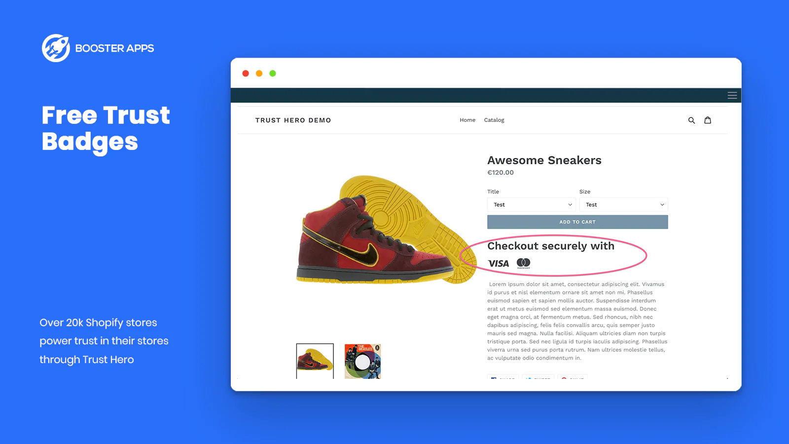 With Trust Hero - you can stop these customers from leaving your store by displaying free payment and security badges on your product pages.