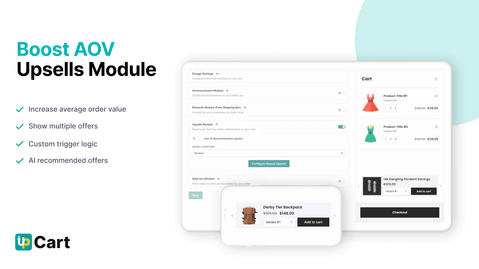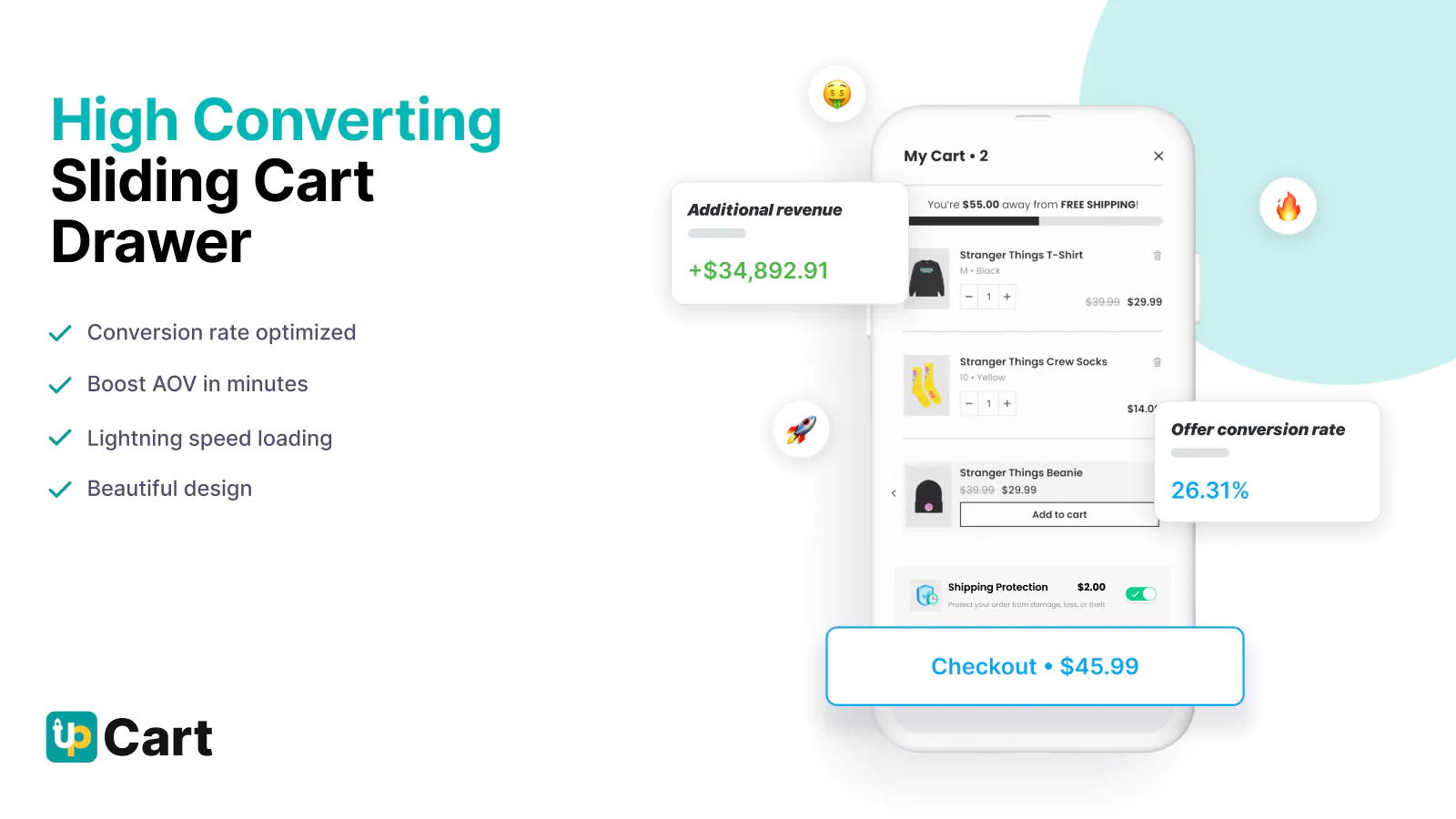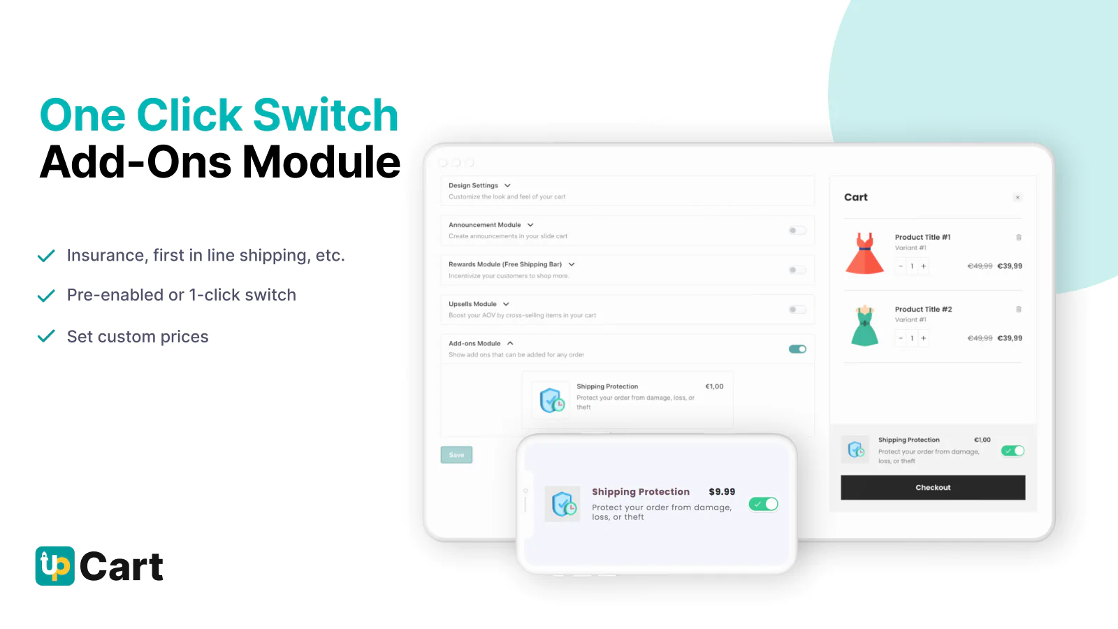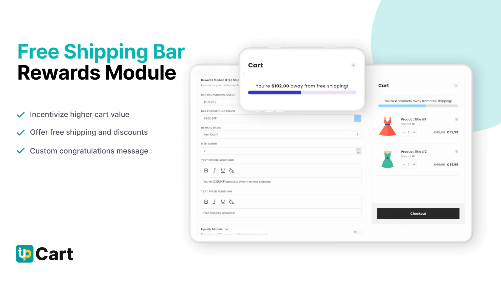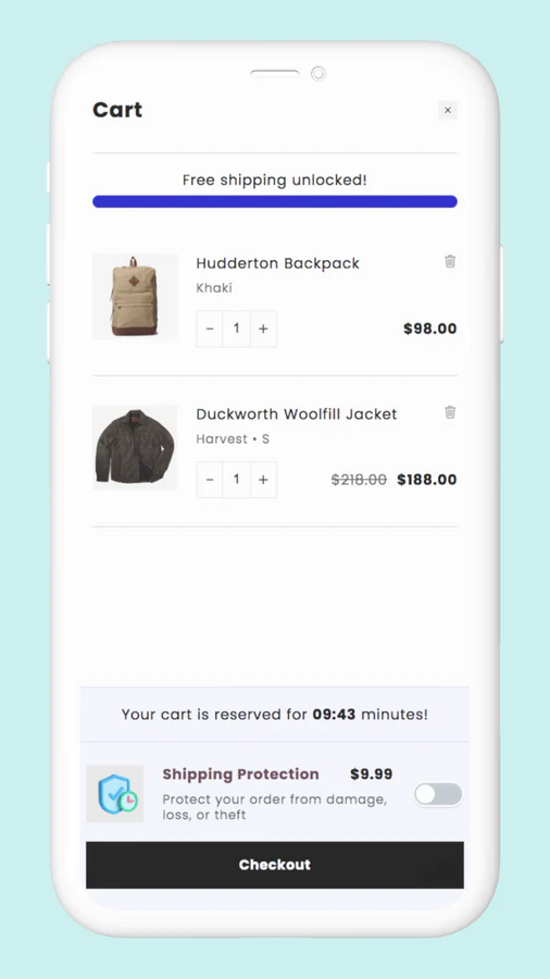 Cart upsells & more! : Customize your cart to add embedded upsells, free shipping bar, discount rewards, add-ons, shipping protection insurance, and much more!