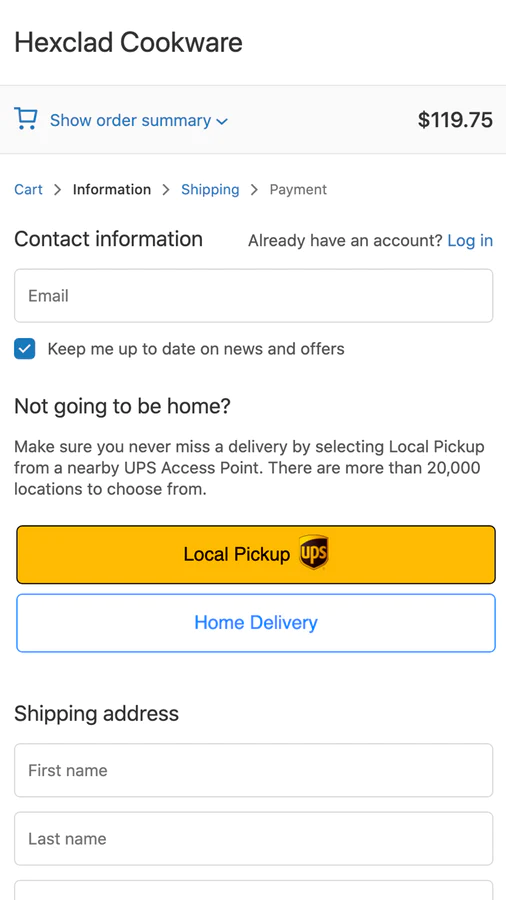 Encourage cart conversions : When customers have the option to pick up their orders, it reduces their worries about missed deliveries and encourages cart conversions.